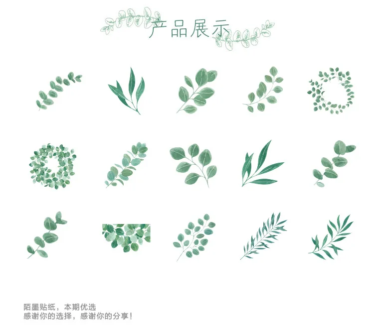Декоративные мини-наклейки в виде зеленых растений, набор для скрап...