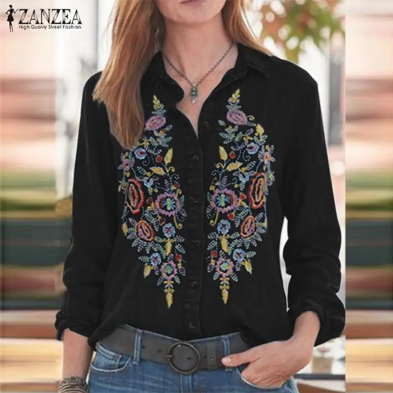 Осенняя джинсовая рубашка ZANZEA 2022, Женская туника с вышивкой, т...