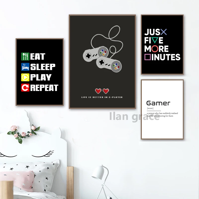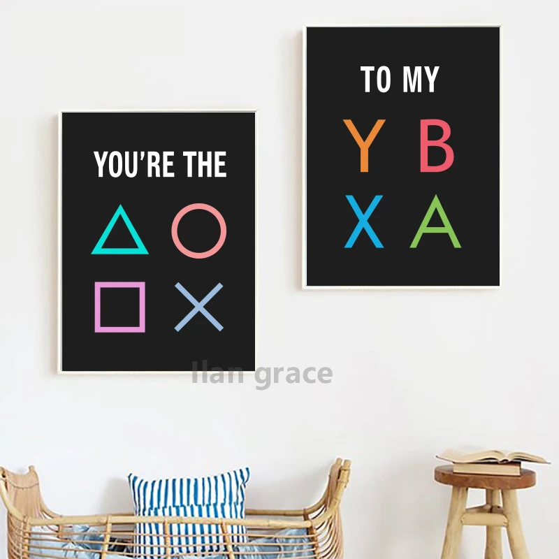 Gamer Joystick Symbols Art Painting Teen Boy's Room Decor
