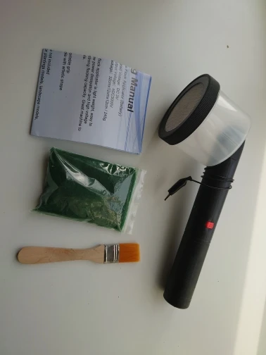 Быстро получил. Устройство работает идеально. Образец флока, поставляемый с устройством, не дает очень реалистичного изображения травы, производит слишком яркий, но позволяет проверить правильную работу этого аппликатора. Предоставляем 2 батарейки AA (безопасность при транспортировке).