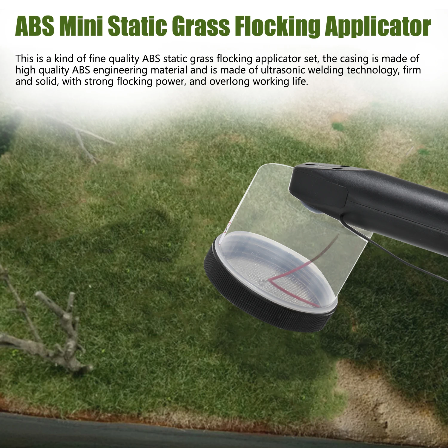 Использование шагов: Зарядите аккумулятор перед использованием и проверьте, находится ли провод внутри контейнера в контакте с проволочной сеткой. Это кнопка управления шагом. Положите в травяной порошок. Предположили, что длина травяного порошка более 5 мм, что является более эффективным. Затем затяните крышку. На целевой модели и на столе, вытяните белый латекс и равномерно распределите его, готовы начать пыль с порошком травы. Прикоснитесь к целевой поверхности платформы с отрицательным электрическим соединителем как можно ближе, затем используйте траву сеялки, чтобы начать распыление порошка травы на 2-3 см от цели платформы. После того, как травяная пыль завершена, Налейте травяной порошок или порошковую добавку и промокните ее с помощью модели пылесоса. Вырежьте стопку сена маленькими ножницами и зубочисткой, пока она не вырастет равномерно. Примечание: Не используйте отрицательный терминал, чтобы связаться с ними с проволочной сеткой, существует опасность, вызванная искрами! Ограничение использования более 16 лет! Снимите аккумулятор и установите его высоко, когда он не используется. Оригинальный экранный аппликатор для статической травы подходит для 3-5 ммстатических трав. Питание от аккумулятора 2 * AA, вы должны подготовить его самостоятельно.