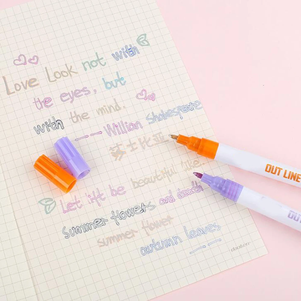 Флуоресцентный маркер 1 шт., двусторонний контурный металлический фломастер для изготовления подарочных открыток, фотоальбомов, заметок, сделай сам
