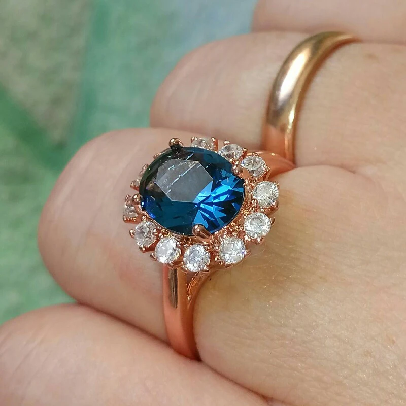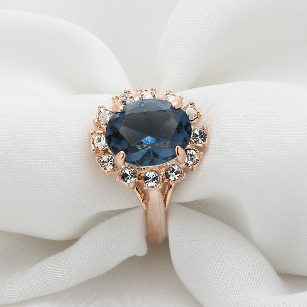 Обручальные кольца с голубым кристаллом, инкрустированные кубическим цирконием, лидер продаж, розовое золото, Модные Винтажные Ювелирные изделия для женщин anel aneis R189