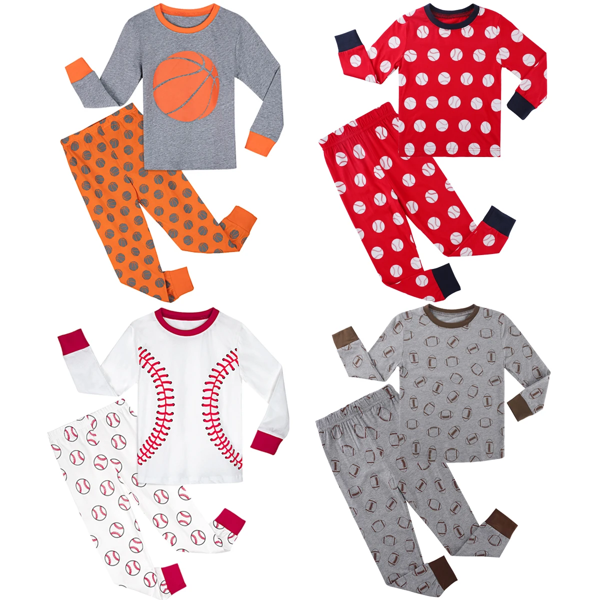 Пижама для мальчиков, комплект одежды из 100% хлопка, детская одежда для сна, пижама с принтом пингвина, детская спортивная зимняя Пижама для баскетбола, Pj