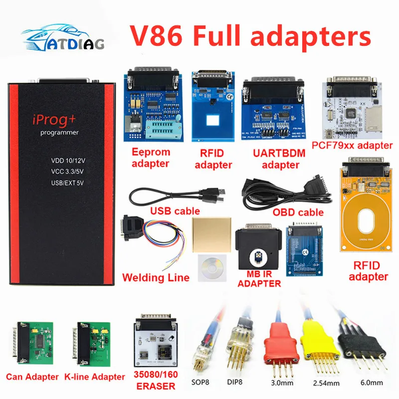Программатор ключей V86 Iprog +, программатор с поддержкой IMMO + коррекция пробега + сброс подушки безопасности Iprog Pro Till 2019 года, замена Carprog
