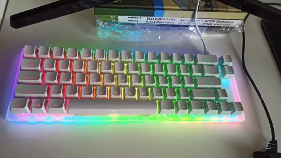 Клава норм. кейкапы правда самые дешманские, напыление на них такое тонкое, что через них просвечивается свет.