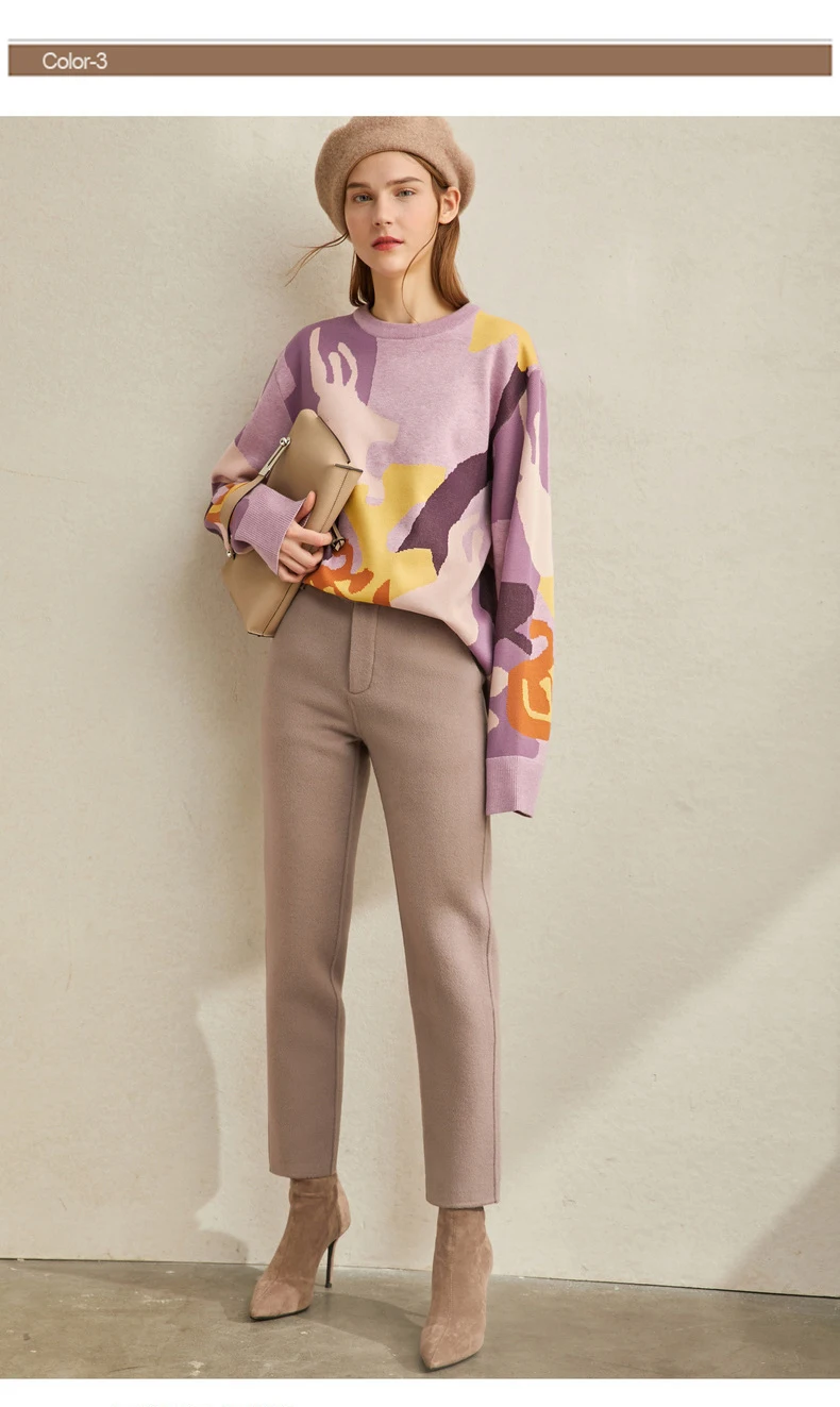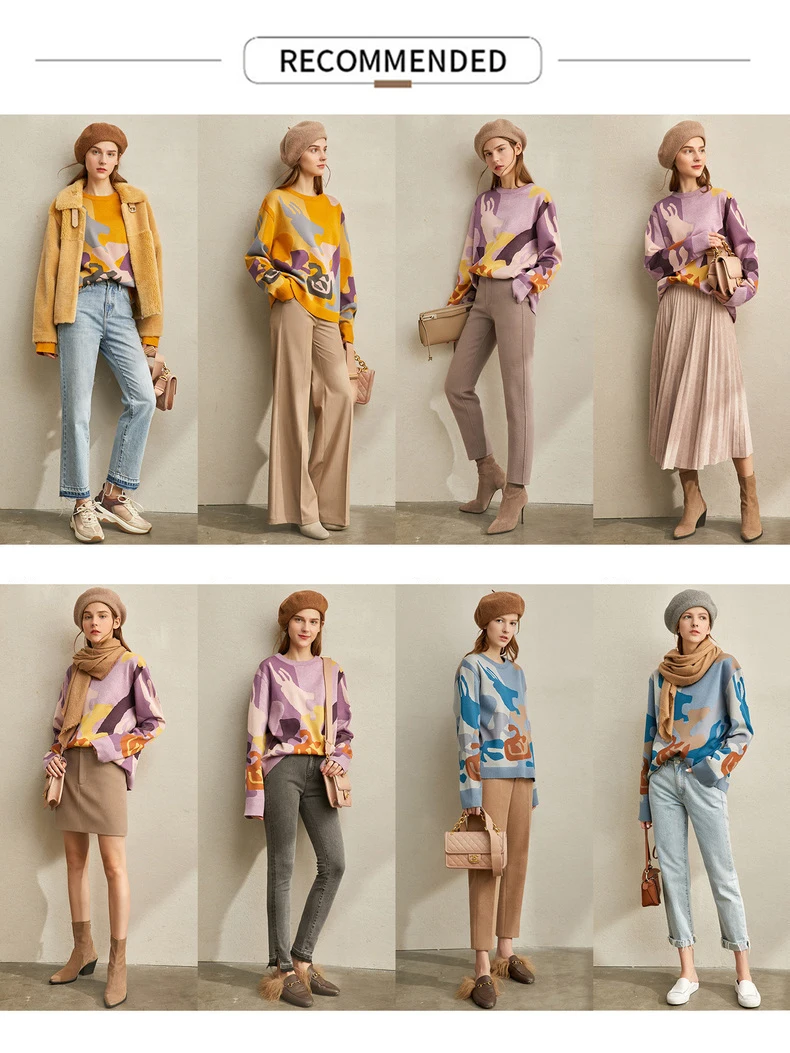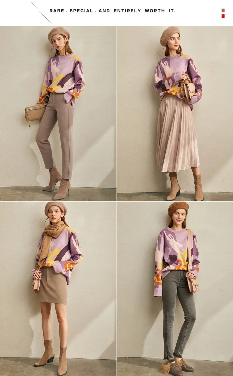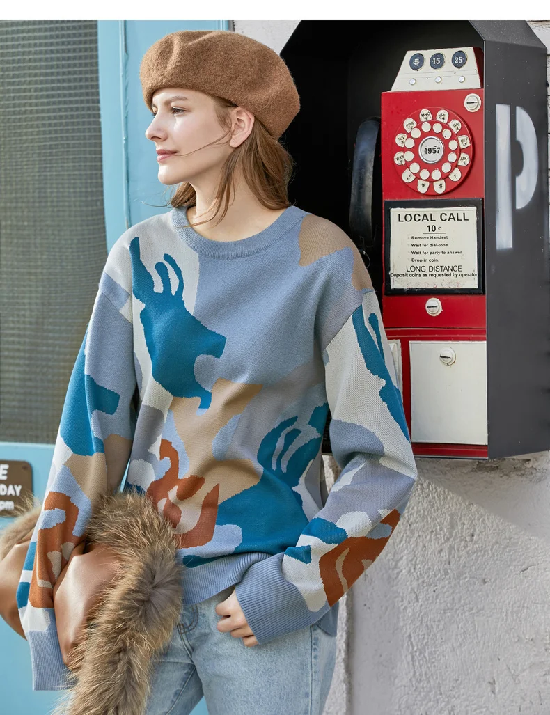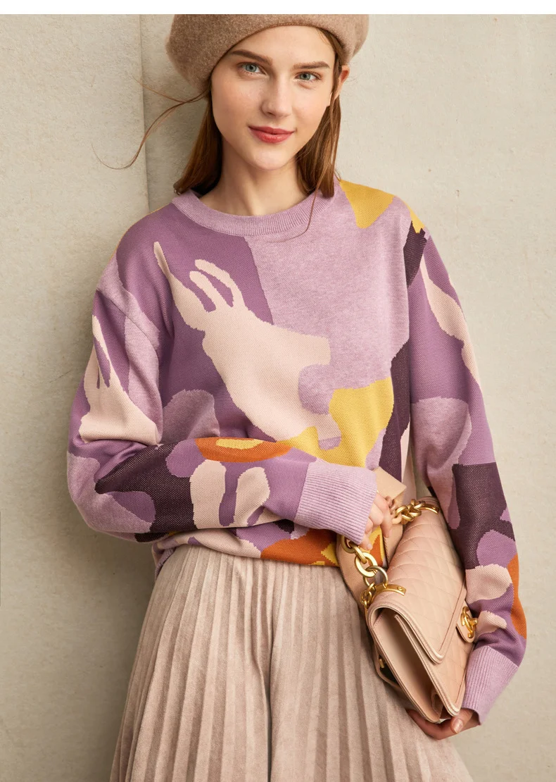 Женский свободный свитер Amii, контрастный шерстяной пуловер с круглым вырезом, 11970381