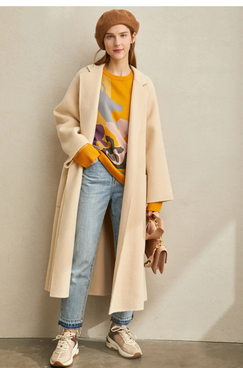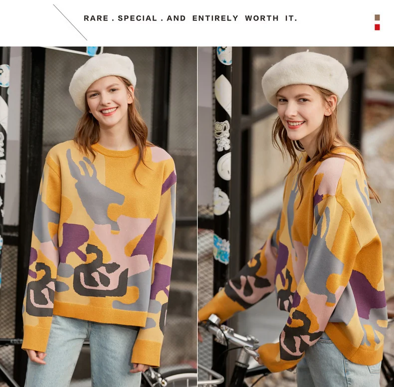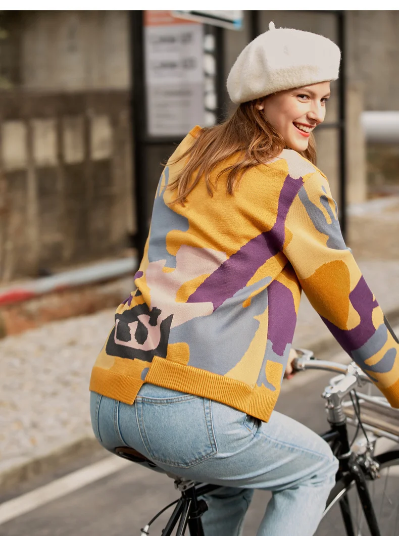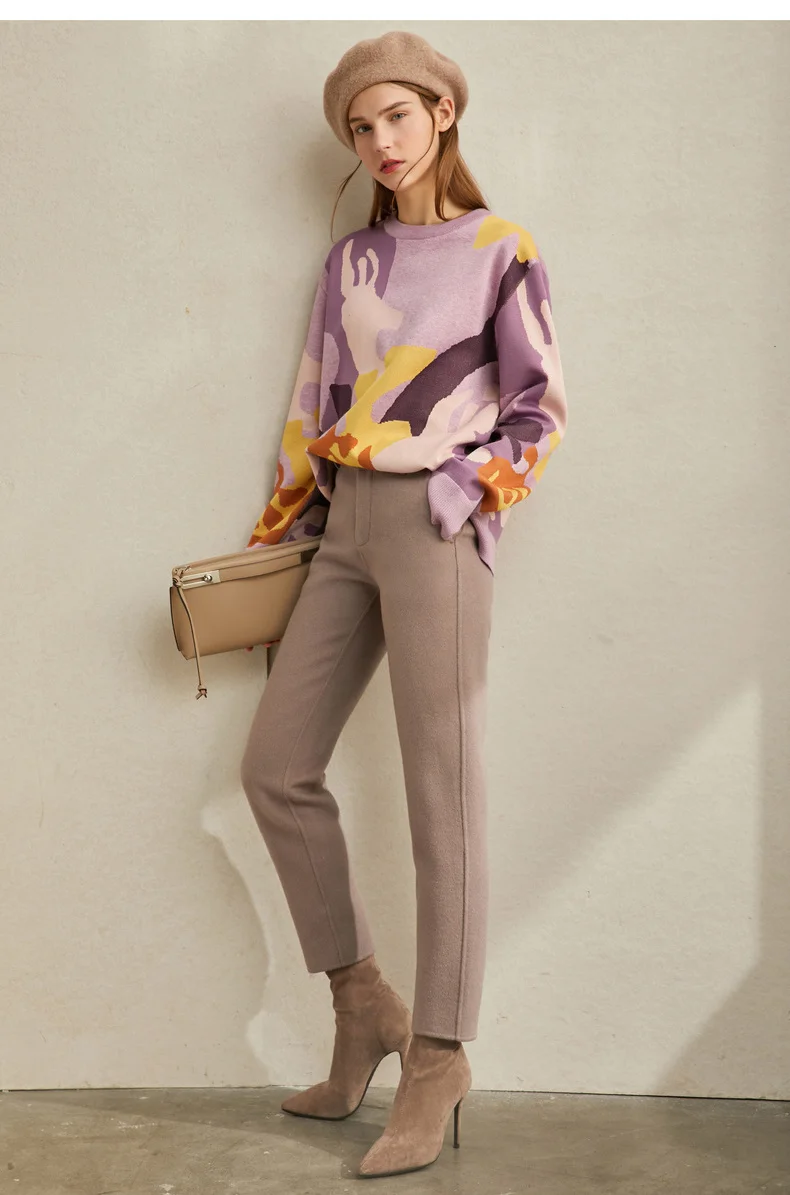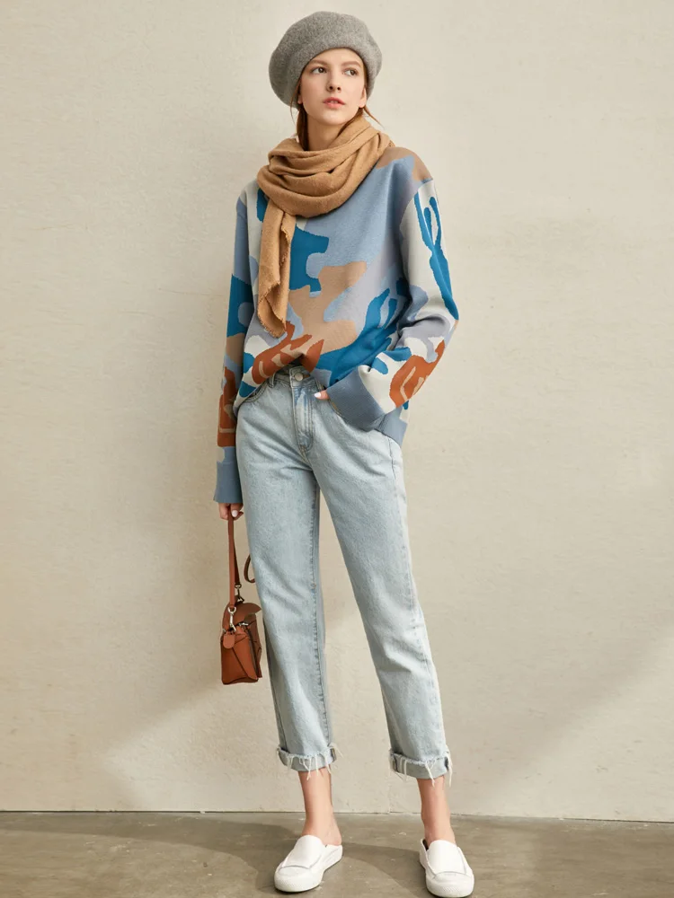 Женский свободный свитер Amii, контрастный шерстяной пуловер с круглым вырезом, 11970381