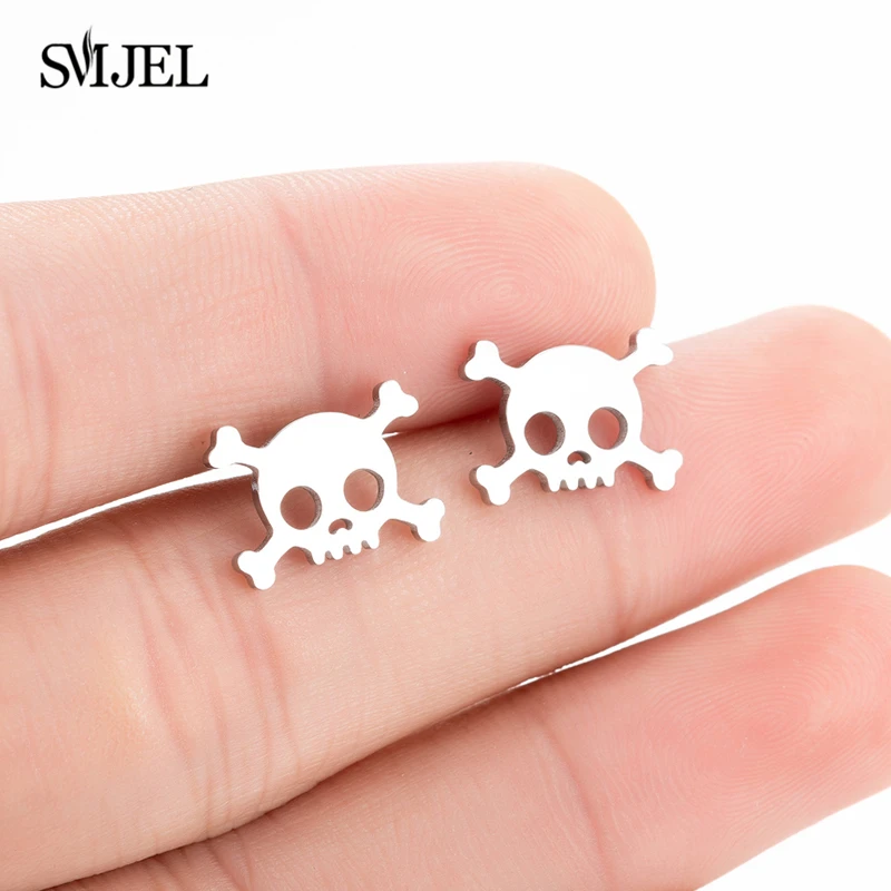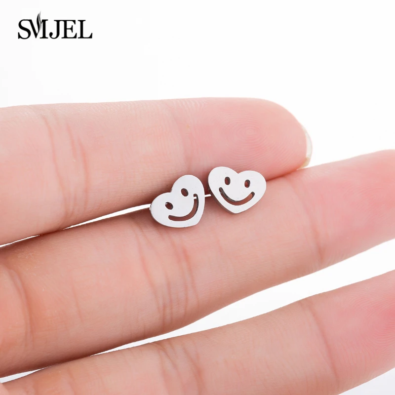 Женские серьги-гвоздики SMJEL из нержавеющей стали, гвоздики с изображением горного черепа, смайлика, глаза, сердца, индивидуальные украшения для детей, Подарочная бижутерия
