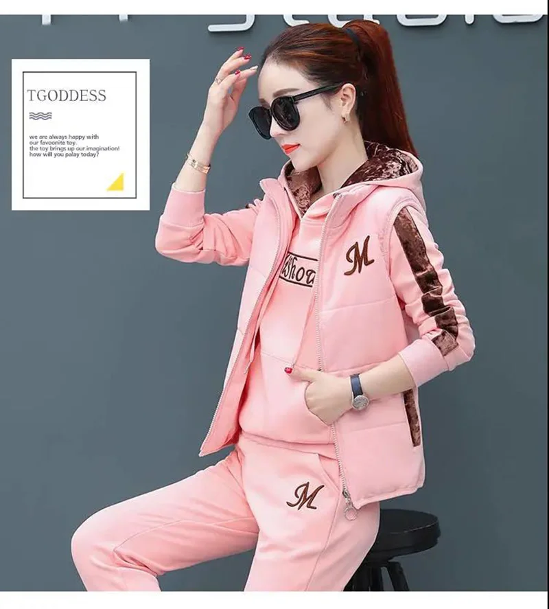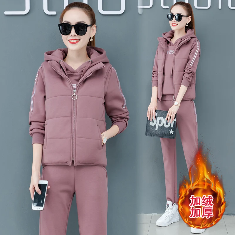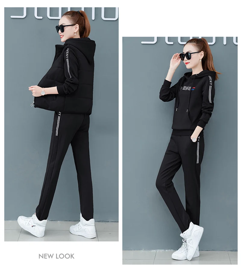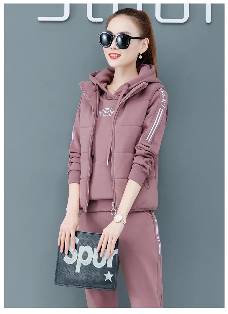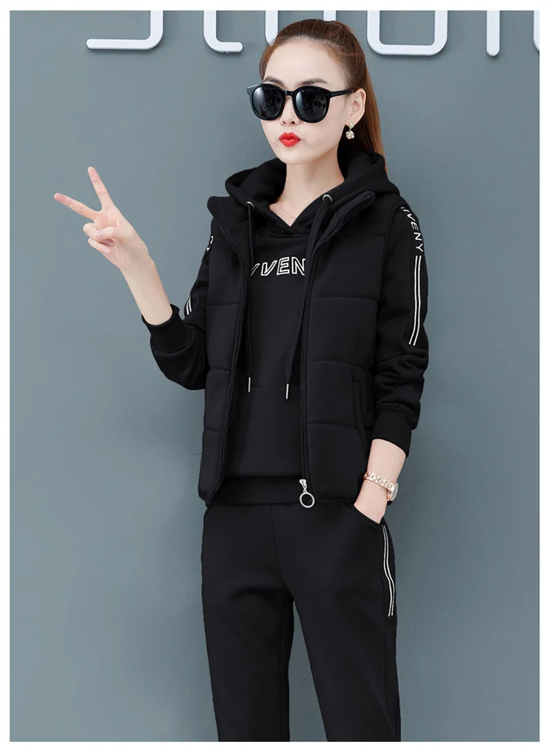 Женский костюм, спортивный костюм, зимний комплект из 3 предметов, толстовка + жилет + штаны, повседневный костюм, плюс бархат, спортивные женские костюмы, женская одежда
