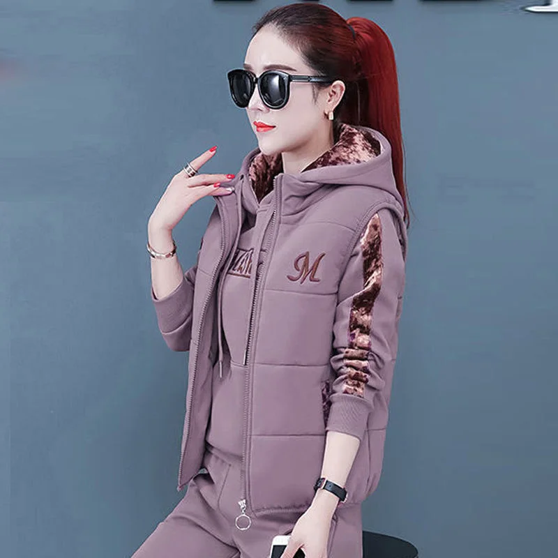 Женский спортивный костюм, зимний комплект из 3 предметов, толстовка + жилет + брюки, повседневный костюм, бархатные теплые спортивные женские костюмы, женская одежда