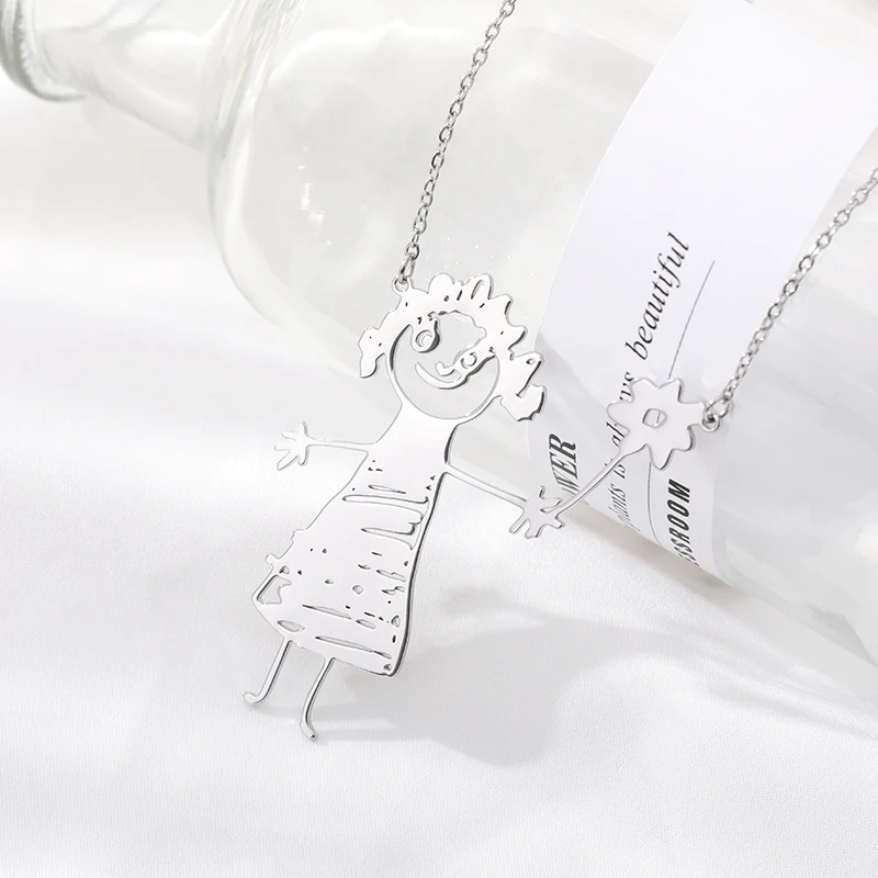 Индивидуальное детское ожерелье с рисунком Kid'S Art, детское произведение искусства, индивидуальное имя, ожерелье, ювелирные изделия, рождественский подарок для детей