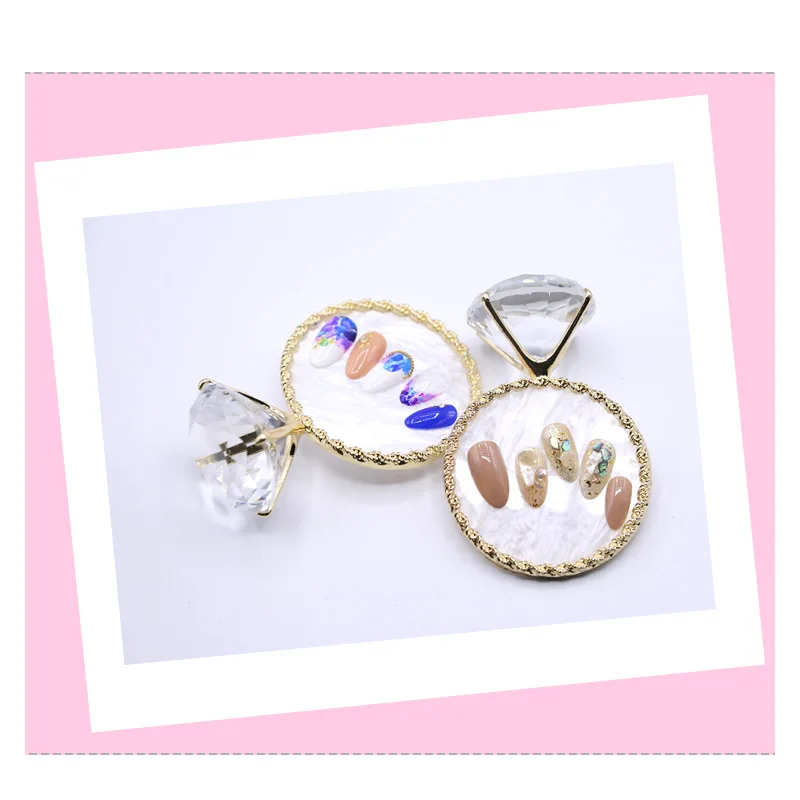 1 шт. Алмазная Пластина для искусственного маникюра, подставка для демонстрации накладных ногтей, палитра с золотым ободком и агатом, Гель-лак, дисплей, фото реквизит, демонстрационные инструменты