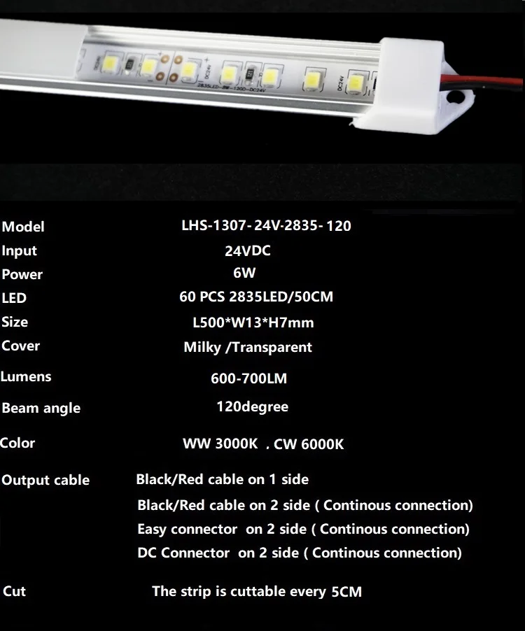 Светодиодный светильник для шкафа, 24 В постоянного тока, 50 см, 20 дюймов, диодный Невидимый плоский профиль 2835, 6 Вт, 14 Вт, лента для полки, U-образная жесткая Соединительная линейная лента