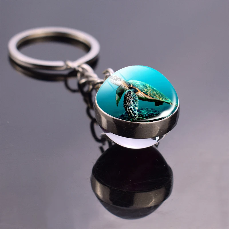 Морской брелок с черепахой стеклянный шар кулон океан животное брелок из нержавеющей стали ювелирное изделие в форме черепахи FKG