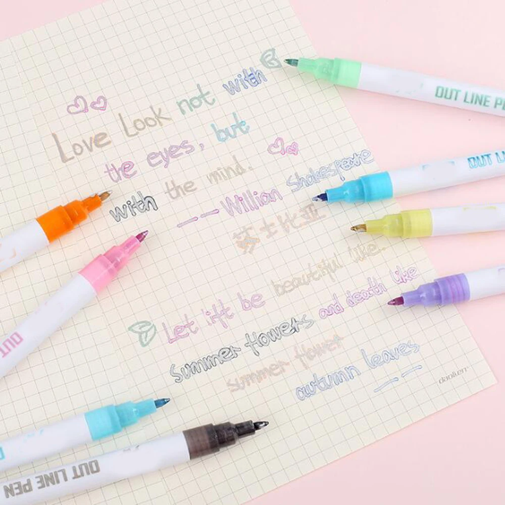 Метка, Блестящий Флуоресцентный маркер, металлическая цветная ручка, двойная линия, контурная ручка для изготовления подарочных открыток, сделай сам, фотоальбом, заметки