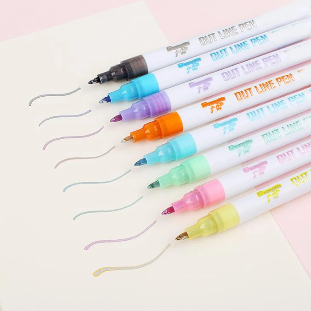 Маркерная ручка, 8 шт. в наборе, Подарочная блестящая флуоресцентная маркер, металлическая цветная ручка, двойная контурная ручка для DIY фотоальбома, школы, офиса