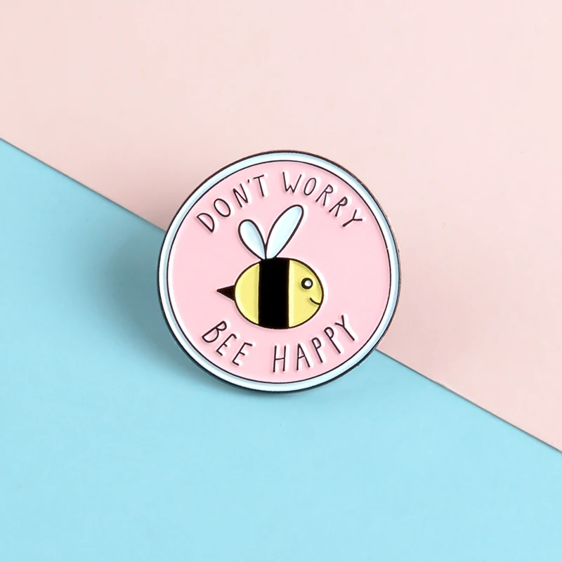 Новинка, Розовые Круглые Эмалированные булавки в форме насекомых, не волнуйтесь, абстрактные булавки для детей, булавка для лацканов, рубашки