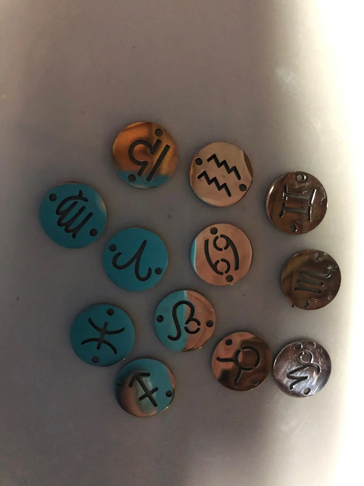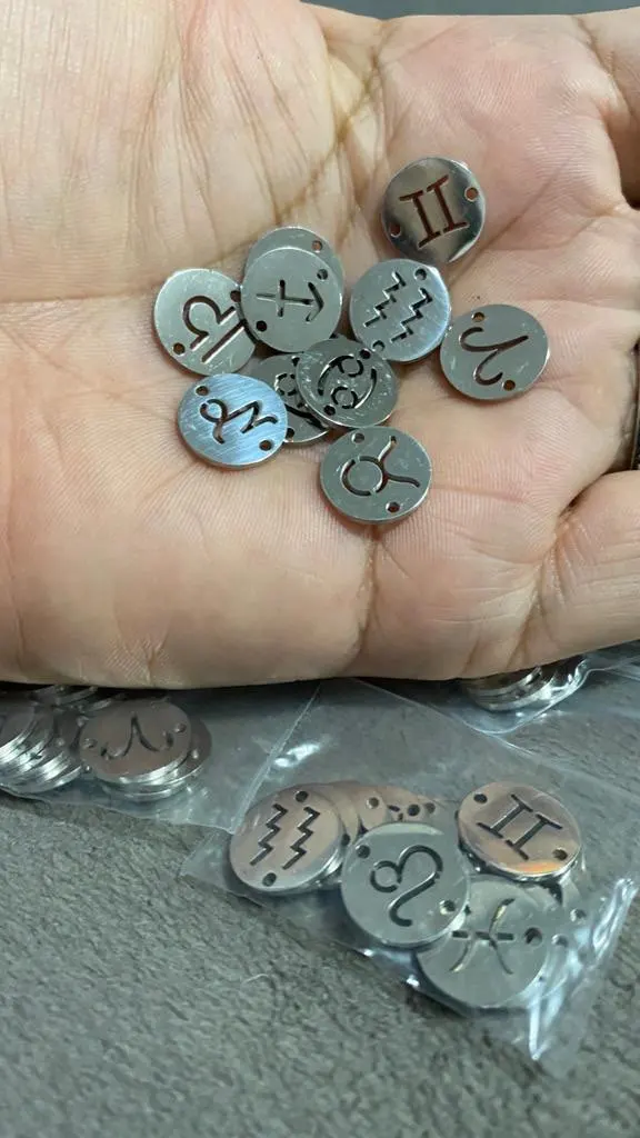 Очаровательные ювелирные изделия из нержавеющей стали с двумя отверстиями, 12 мм, кулоны со знаками Зодиака, 12 шт.