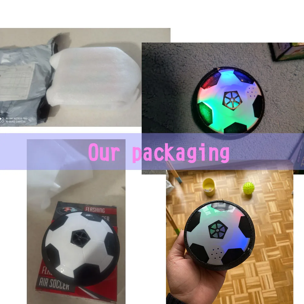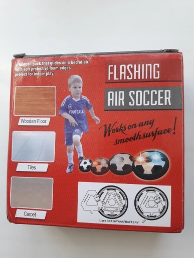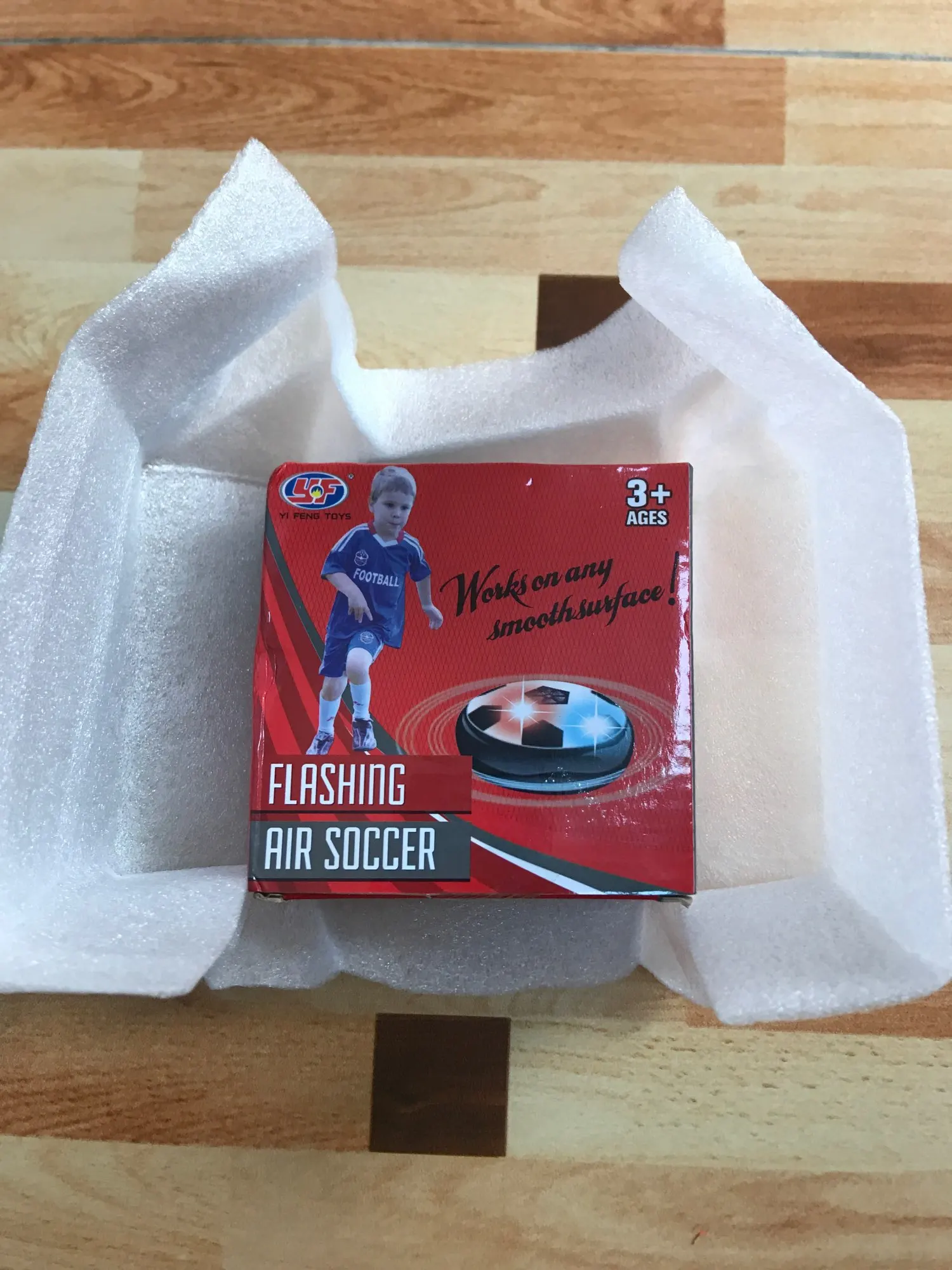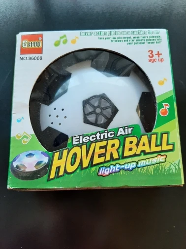 Доставка стандартная, не быстро. Упаковка хорошая, в коробочке. Доехало не мятым и не битым. Игрушка очень забавная. На ровной твердой поверхности очень хорошо парит (ламинат, плитка). Ребенку очень нравится. Питание 3хААА, посмотрим на сколько хватит, потом заменю на акуммулятор. Из минусов: достаточно громко шумит. Как пылесос или электробритва... В целом доволен и рекомендую! ЗЫ Да что дети, я сам сижу играю в футбол ))