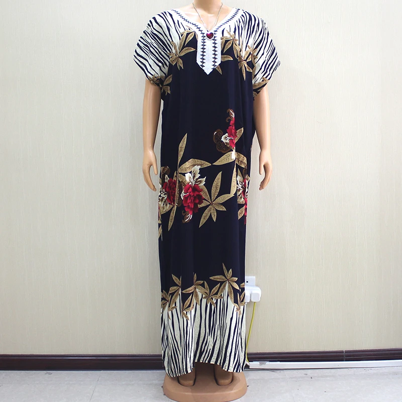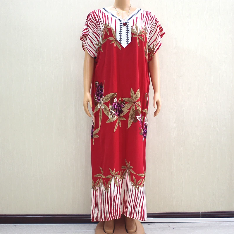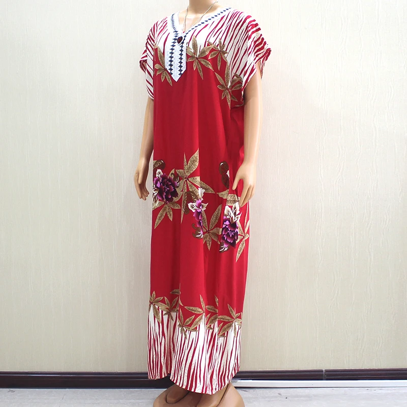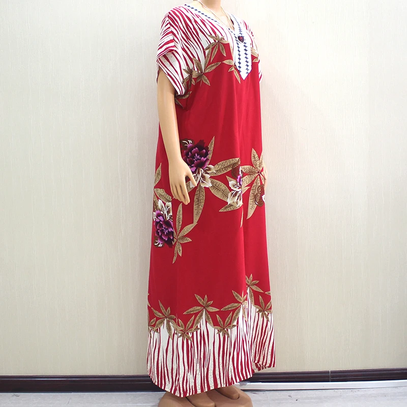 Модное Новое поступление 2019, замечательное Красное длинное платье из 100% хлопка с аппликацией, V-образным вырезом и коротким рукавом, Африканское длинное платье Дашики