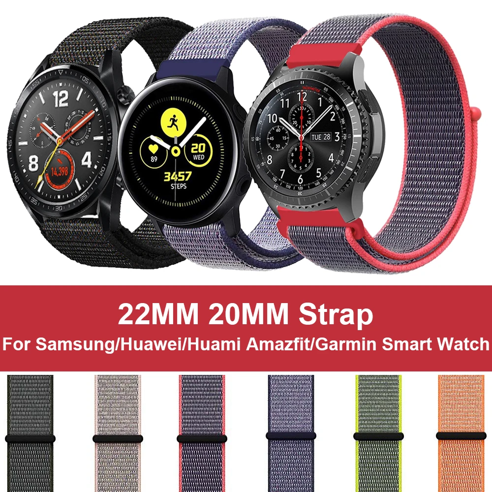 Нейлоновая петля для samsung Galaxy Watch Active 46 мм S3 ремешок браслет 22 мм 20 мм для Amazfit Bip GTR huawei Garmin Vivoactive3