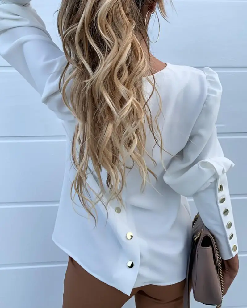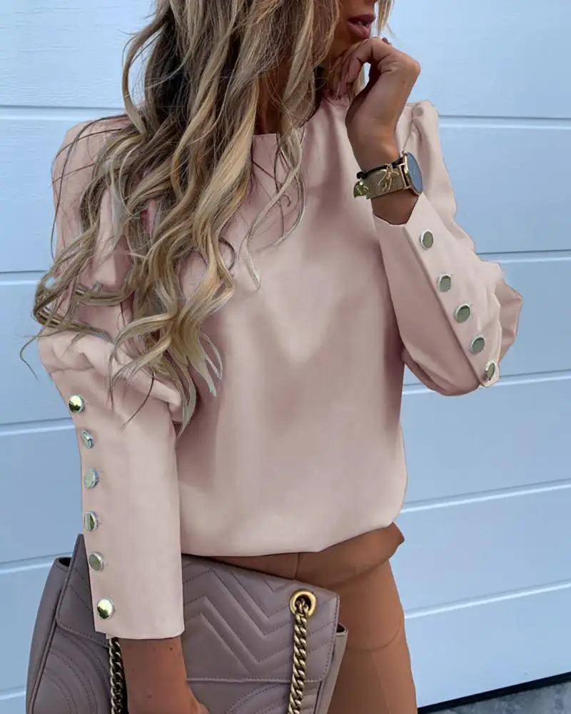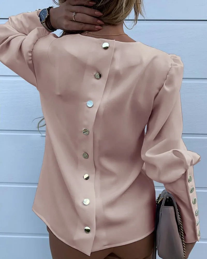 Женская офисная блузка с круглым вырезом, длинным рукавом и пуговицами