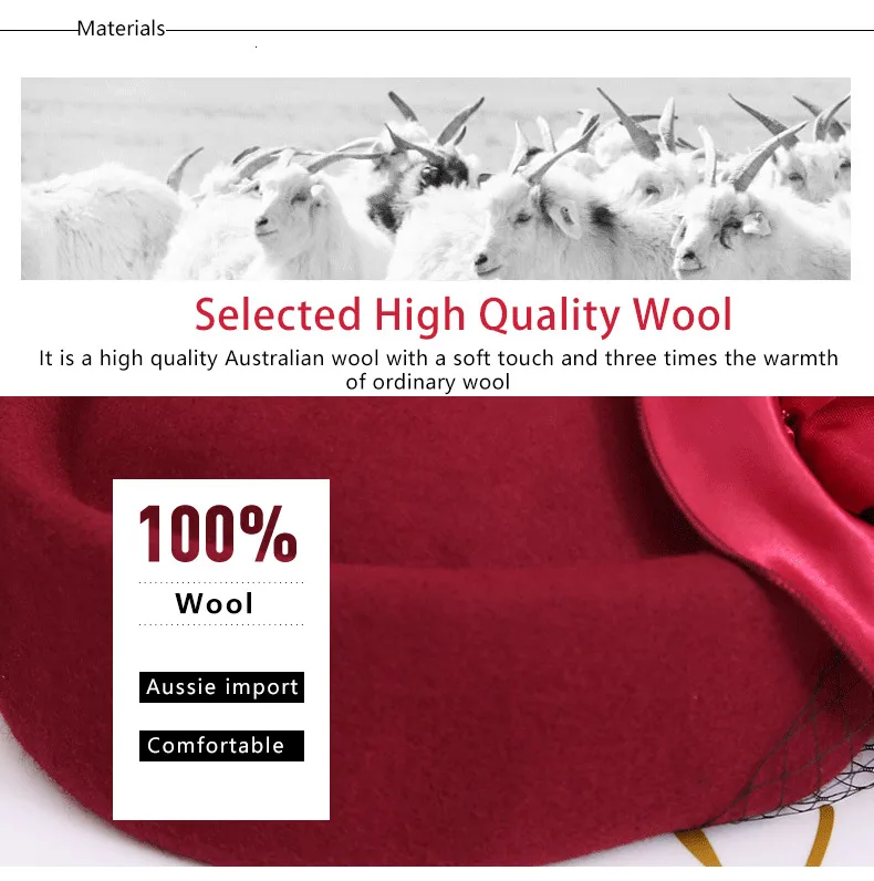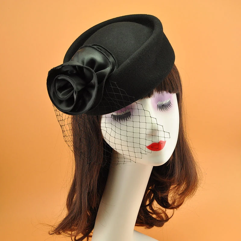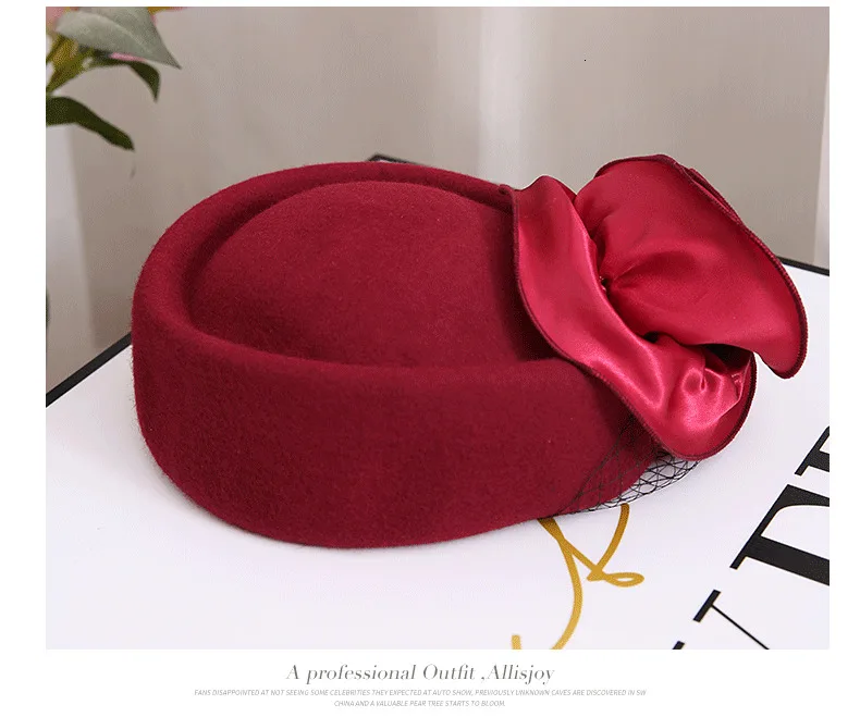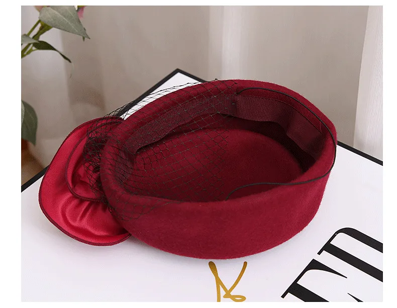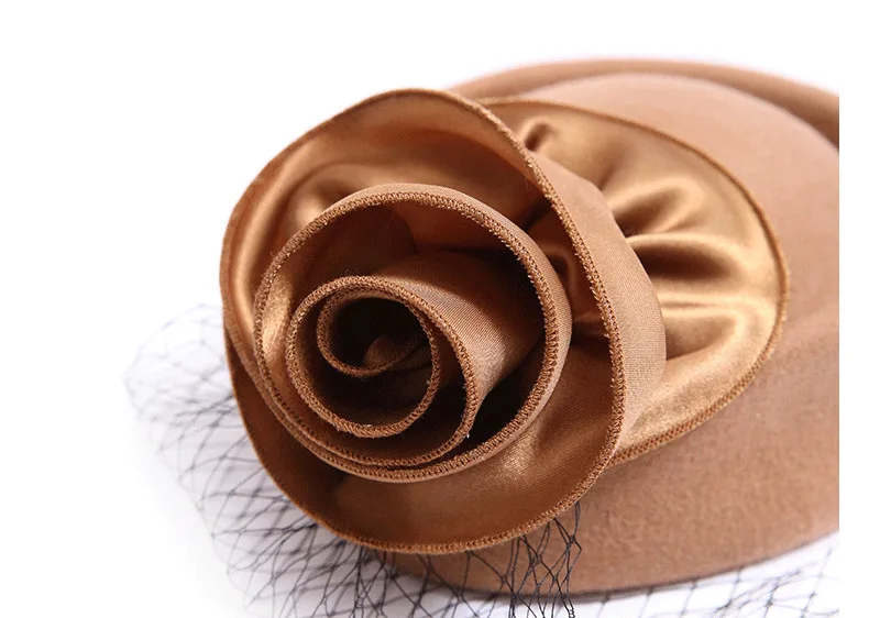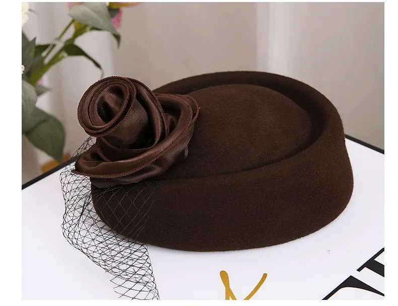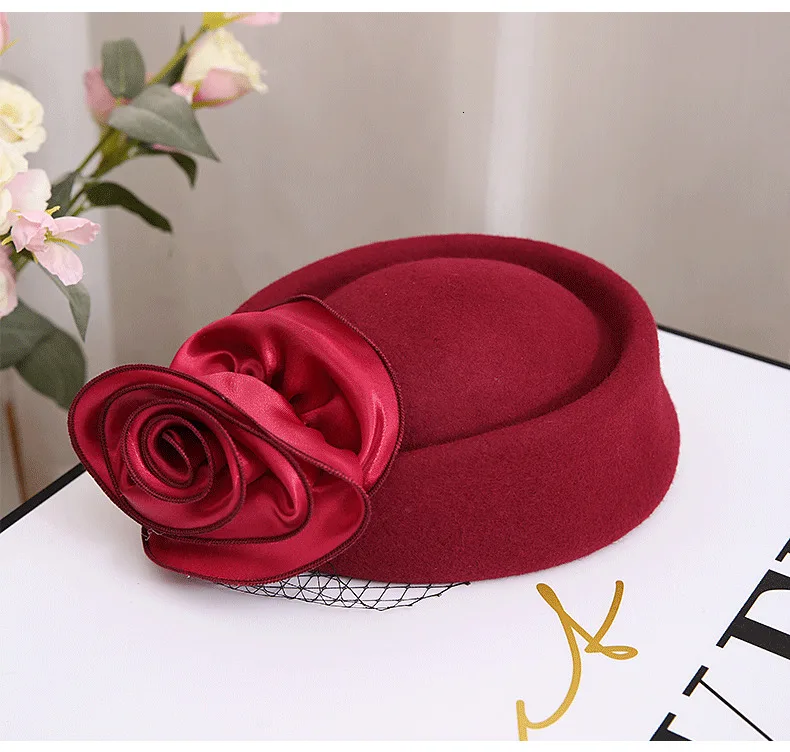 Брендовый качественный классический однотонный берет с цветочным принтом, шапки из шерстяного войлока, зимняя женская шапка, элегантная церковная шляпа, свадебная фетровая шляпа на плоской подошве, официальная шапка