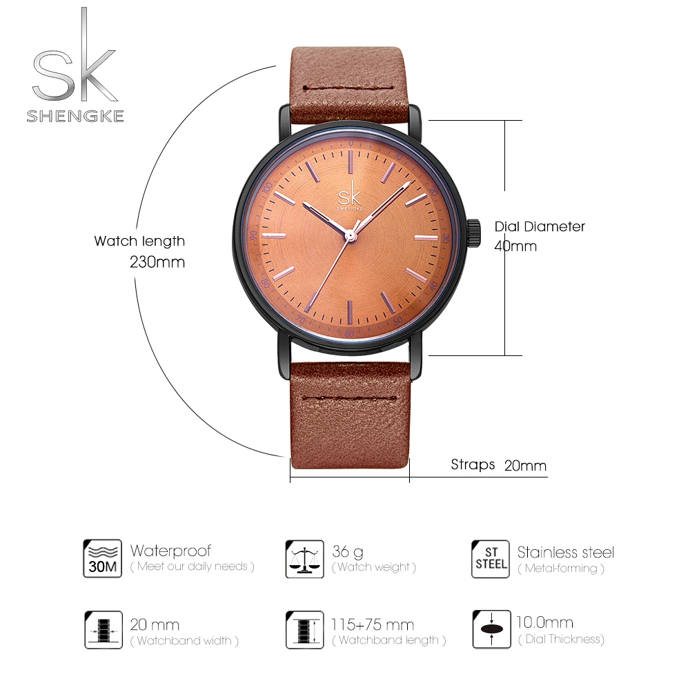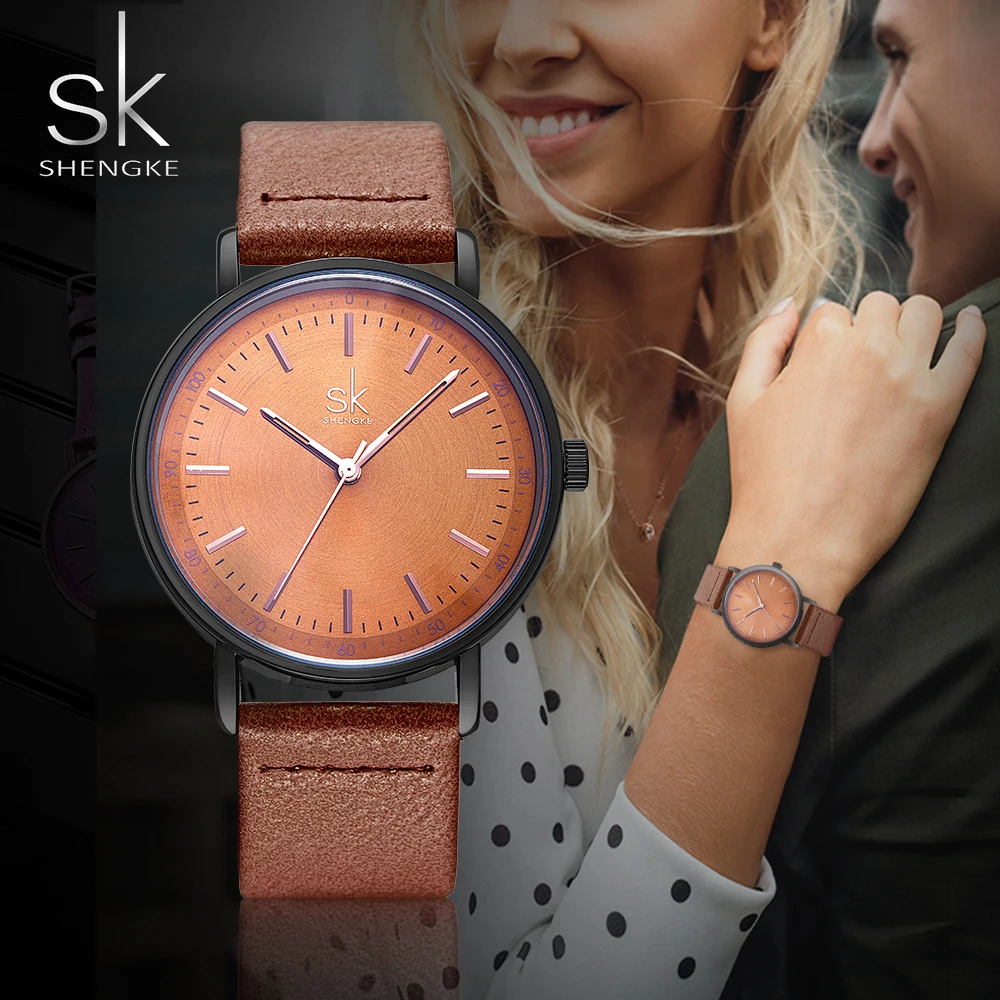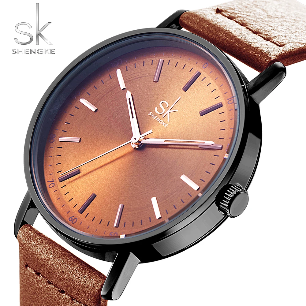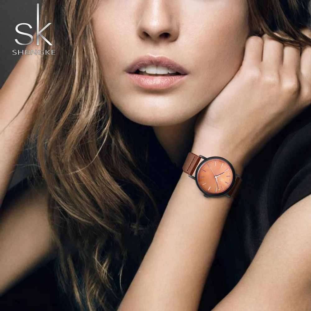 Часы наручные Shengke женские кварцевые, роскошные брендовые модные, с большим циферблатом, Винтажный дизайн, повседневный коричневый кожаный ремешок