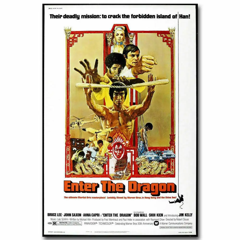 Войдите в дракон Брюса Ли movie24винтажная Наклейка на стену Шелковый плакат художественный светлый холст украшение для дома