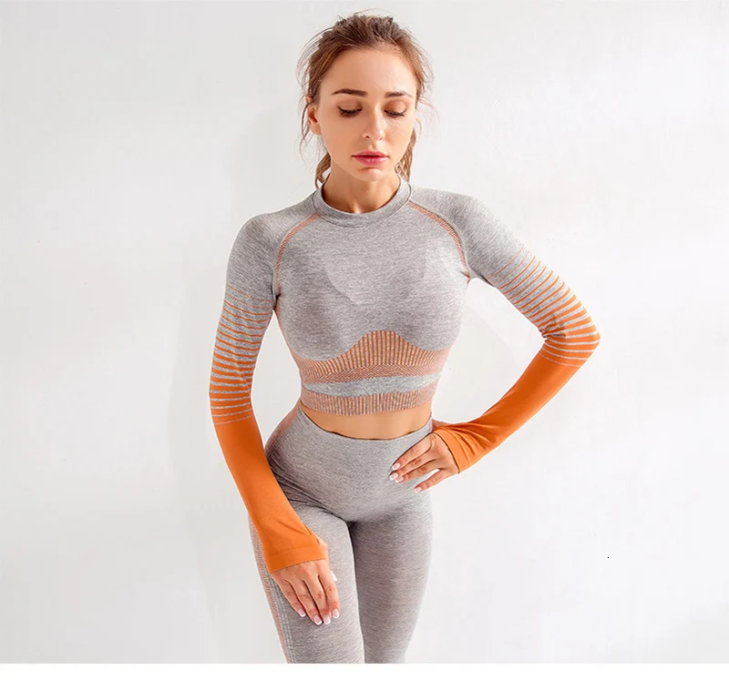 Бесшовный спортивный топ для фитнеса, женский топ для йоги, укороченный топ с длинным рукавом, женская спортивная рубашка, рубашка для йоги, тренажерного зала, тренировок, женская спортивная одежда