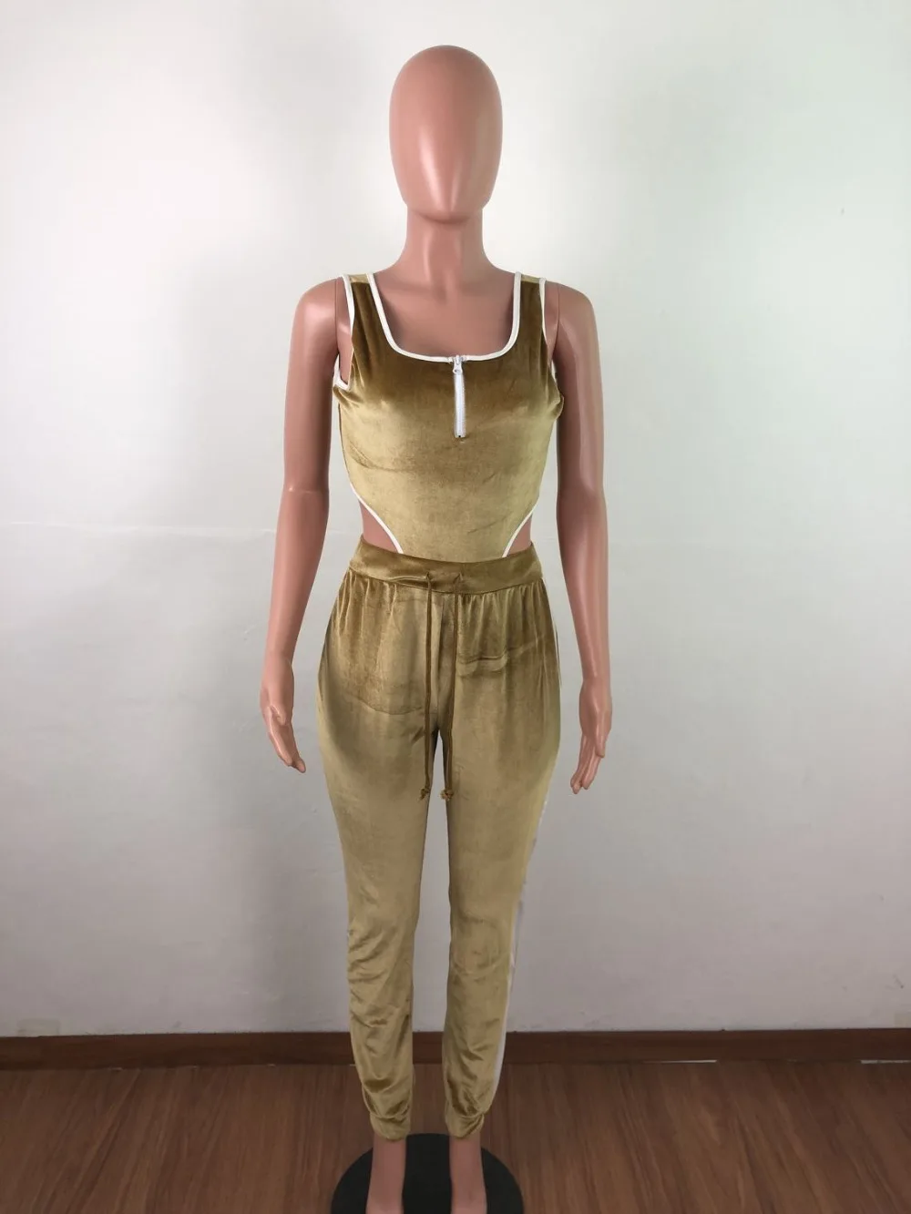 Женский бархатный костюм-карандаш, костюм из двух предметов, повседневный уличный спортивный костюм без рукавов, лето 2021
