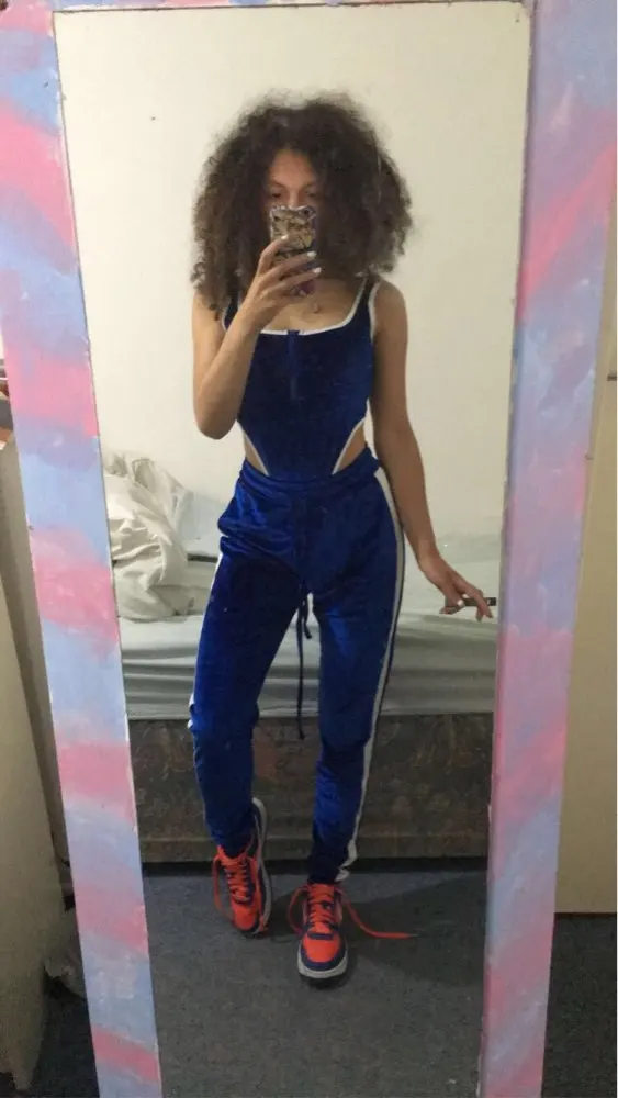 В восторге от этого набора. Цвет такой же, как на картинке, и материал очень хорошего качества. Обратите внимание, что они маломерят, так как я обычно XS, но размер S мне подходит. Я 5'0 и весю всего 100 фунтов. Обратите внимание: у вас большая грудь или больше тела, я бы порекомендовал получить размер вверх.