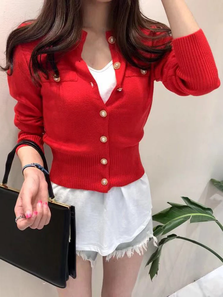 Модный женский кардиган JMPRS, весенний вязаный свитер, короткое пальто с длинным рукавом, повседневный однобортный облегающий корейский шикарный женский топ