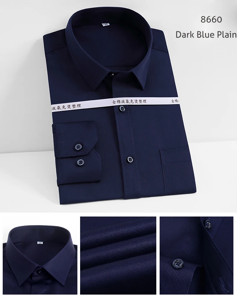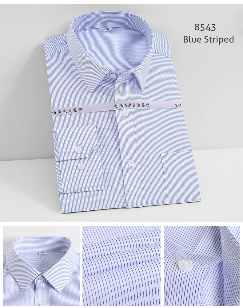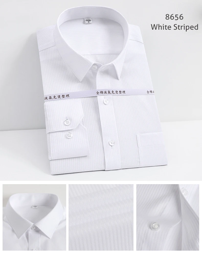 Нежелезная Хлопковая мужская рубашка, однотонная 8XL размера плюс, мужская формальная рубашка, мужская рубашка с длинными рукавами, не мнется, обычная посадка, в полоску, Новинка