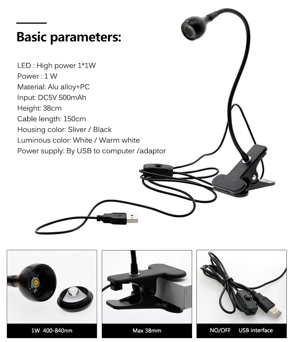 USB светодиодный светильник с зажимом