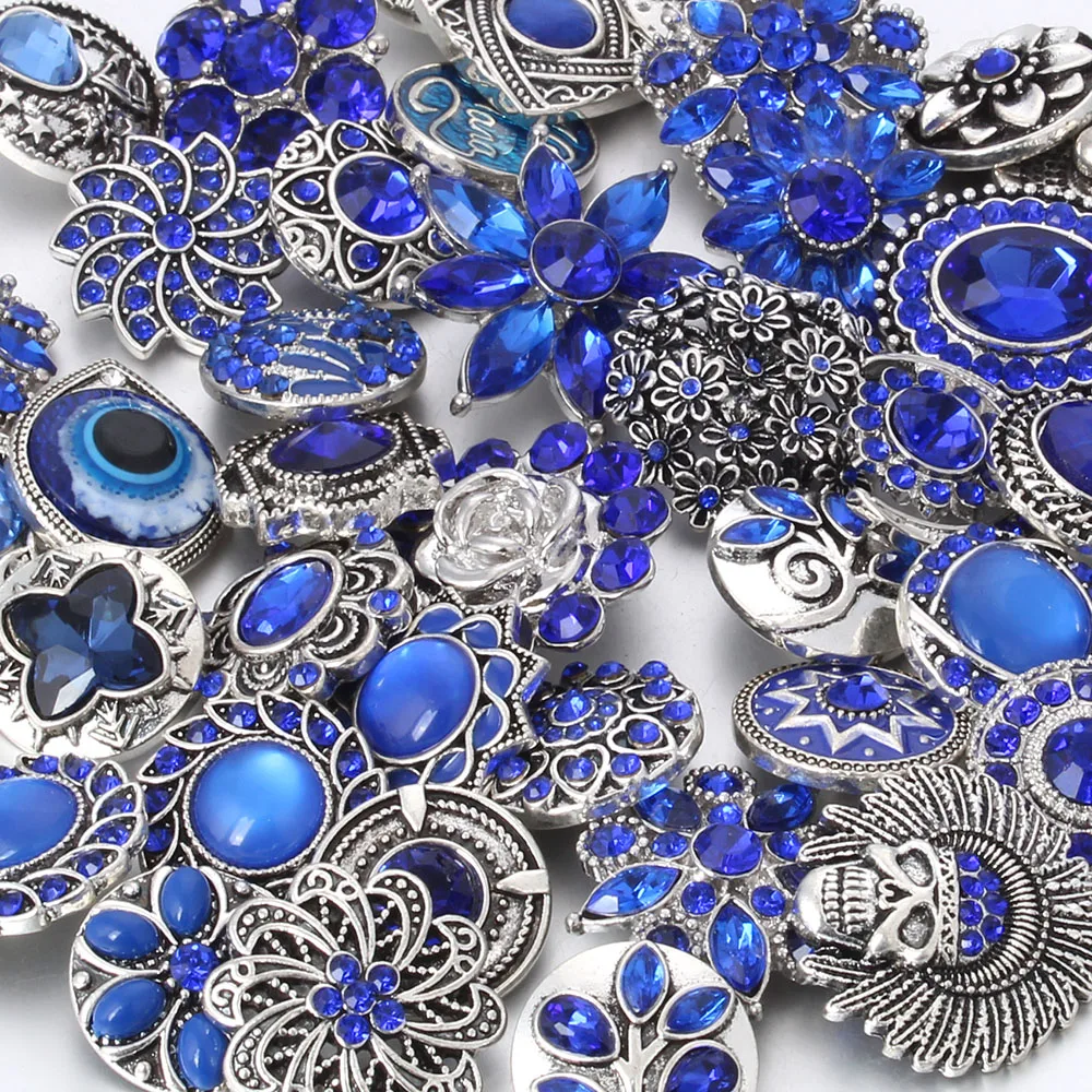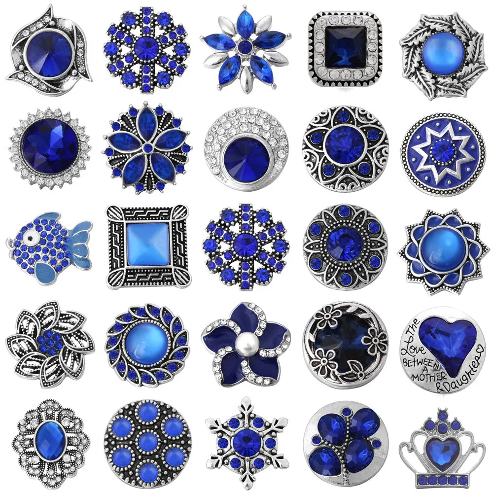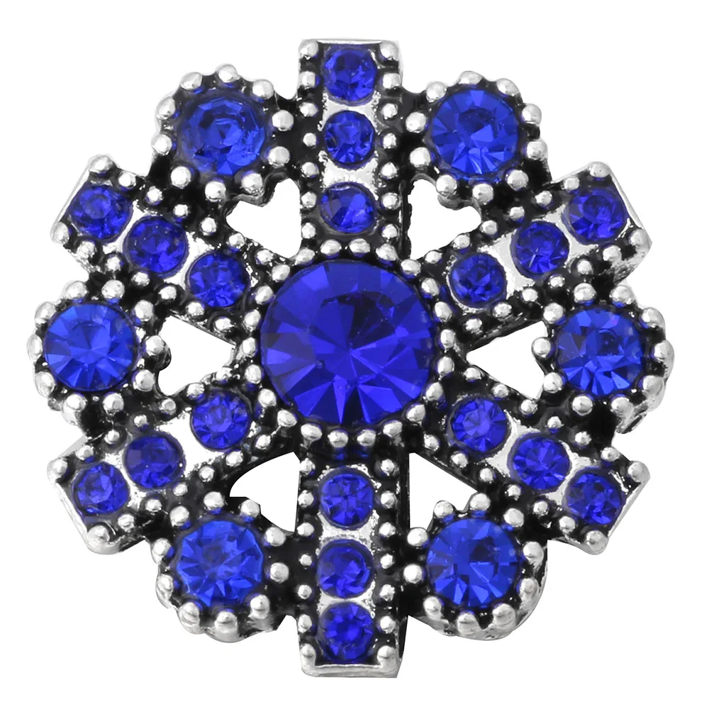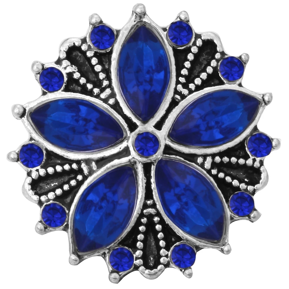 6 шт.лот кнопки-застежки ювелирные изделия с темно-синими стразами цветы кнопки подходят для 18 мм браслеты-обручи самодельные ювелирные изделия