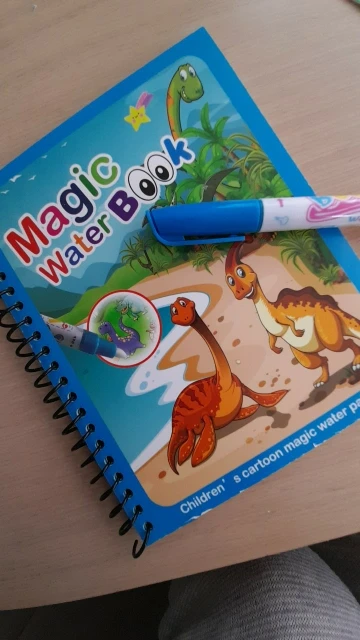 Я думаю, что это отличная книга для самых маленьких... они любят это! .. И спокойствие, которое при работе с водой не окрашивает одежду или мебель, так как они все еще очень малы для карандашей или Картины... и тот факт, что вы можете использовать его снова, как только он высохнет, это чудо!... Реко. Без сомнения, этот продукт и ТБ у этого продавца очень хорошая цена, и доставка была быстрой.