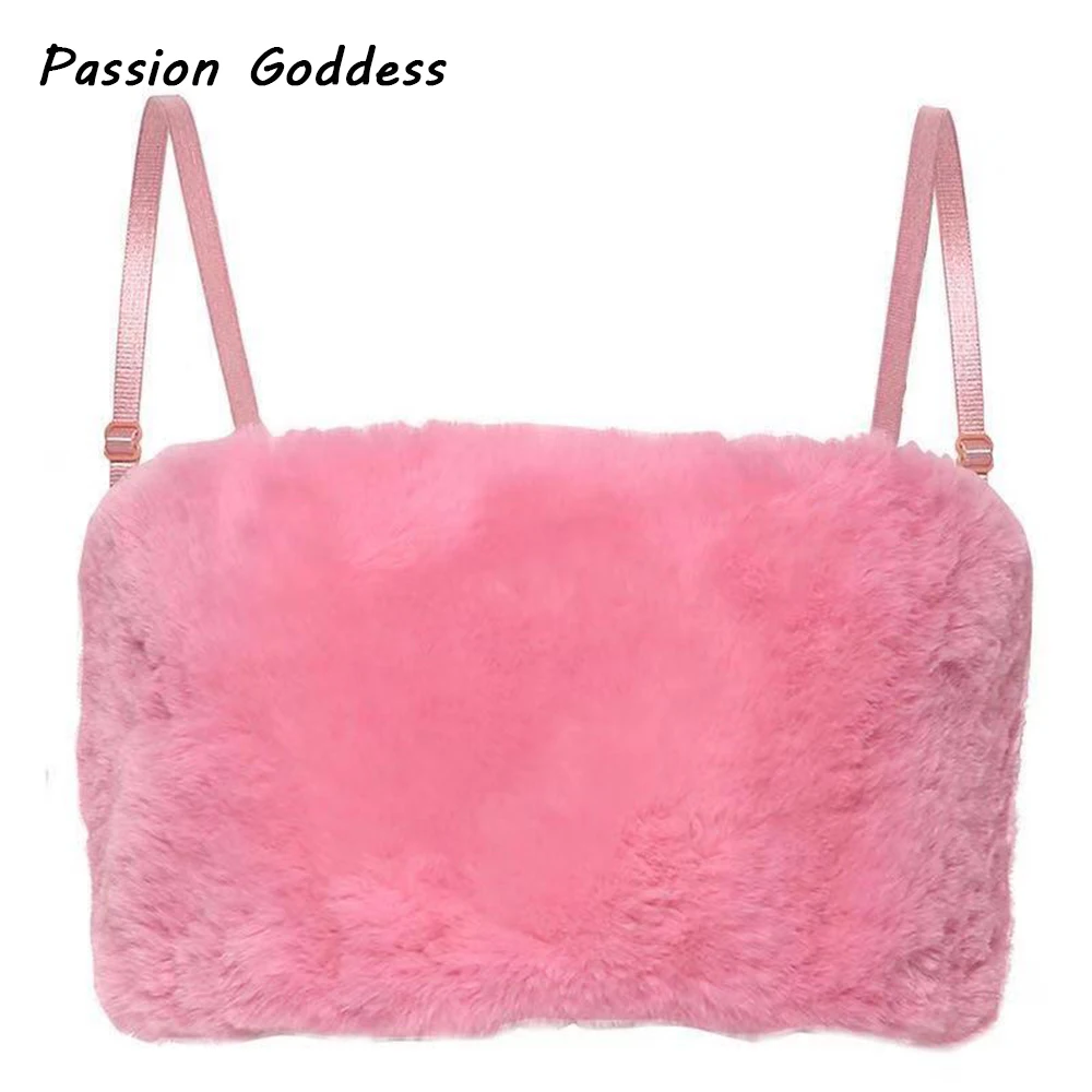 Топ Женский Пушистый без рукавов, милый пикантный меховой розовый топ, милая плюшевая майка бюстье, Бралетт, вечерний Топ