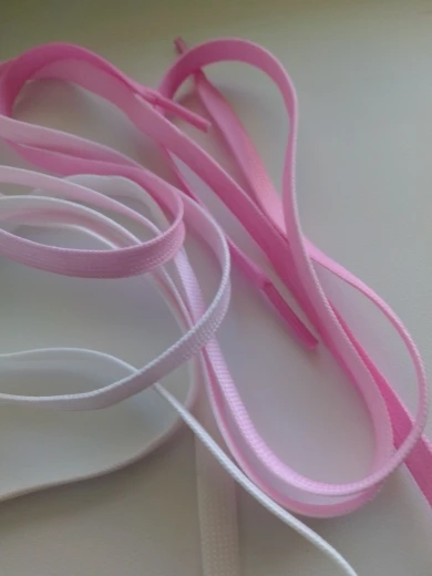 шнурки розовые с белыми, красивые, качественные, советую покупать у этого продавца, товар отличный.