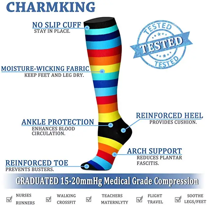 Компрессионные чулки для мужчин и женщин, носки для медсестер и вар...