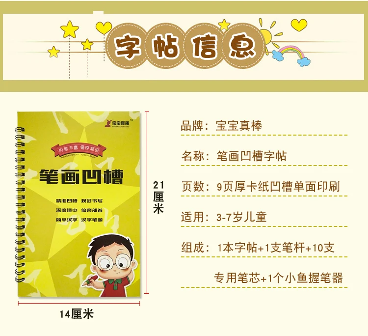 Тетрадь с рисунком китайских радикалов для детей, 1 шт.