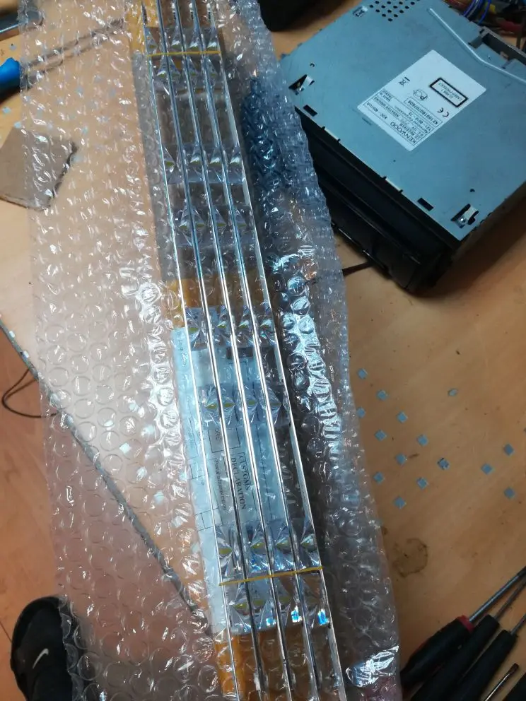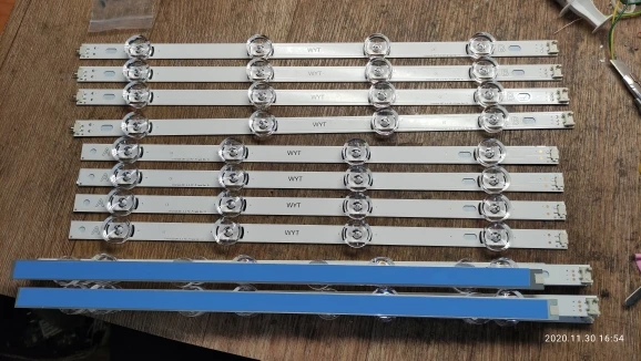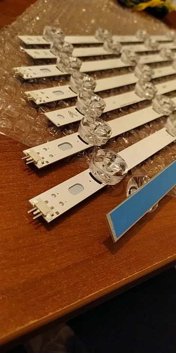 Доставка супер быстрая. При распаковке, качество на вид очень хорошее, алюминиевая основа действует как радиатор для отвода тепла, лед диоды должны проработать дольше по сроку службы. Линзы суппер прозрачные и пропайка аккуратная . По соединениям подошли как родные! Приклеились тоже легко. так как есть все вырезы под направляющие. Подошло всё идеально. Но вот сам цвет диодов разный, от голубого оттенка, белого и до жёлтого. Включал подсветку на всём протяжении сборки телека. Когда поставил рассеиватель перед установкой матрицы, то визуально было видно разброс оттенков и по краям как бы самый яркий свет отдающий голубизной (засветы). Собрал телек, настроил изображение - как бы всё классно, но цветность не такая как у оригинала. Я понимаю, что модель бюджетная и этой подсветкой удовлетворён, так как оригинал будет стоить в 4 раза дороже. Если не придираться - нормальная подсветка для бюджетного телевизора !!! Кто не гурман в идеальном качестве воспроизведения контента - РЕКОМЕНДУЮ.