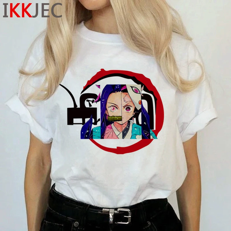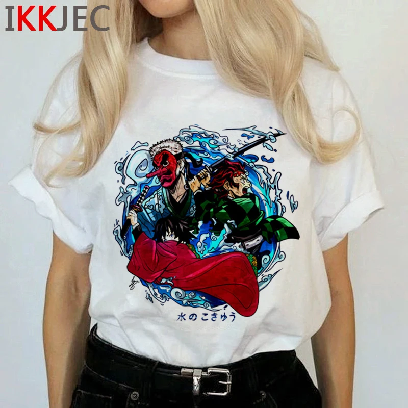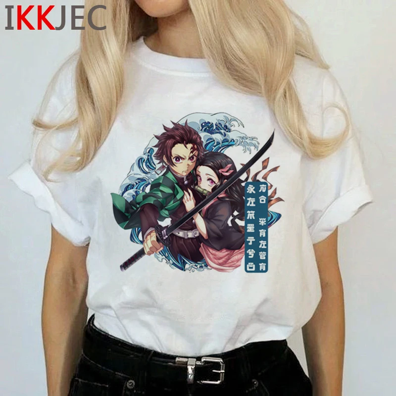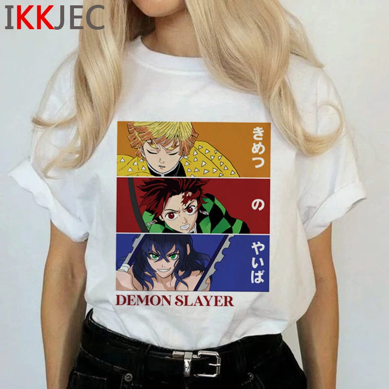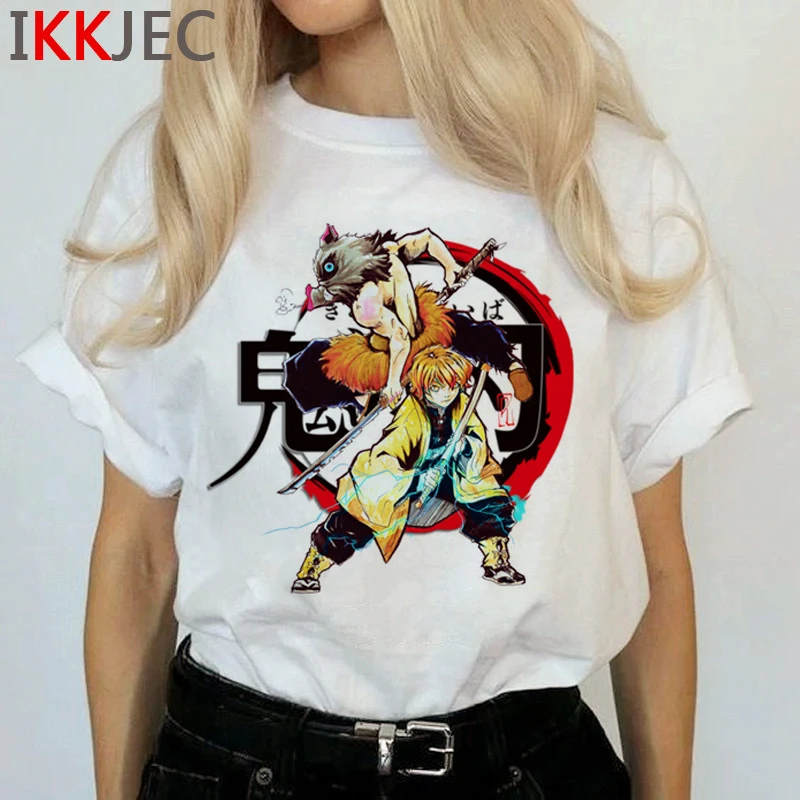 Футболка женская с изображением рассекающего демонов, аниме футболка в стиле Харадзюку, крутая с забавным мультяшным принтом в стиле 90-х, топ с графическим рисунком, Kimetsu No Yaiba Ullzang