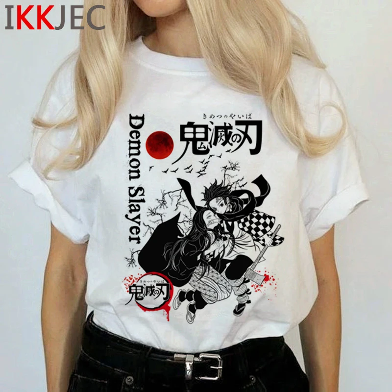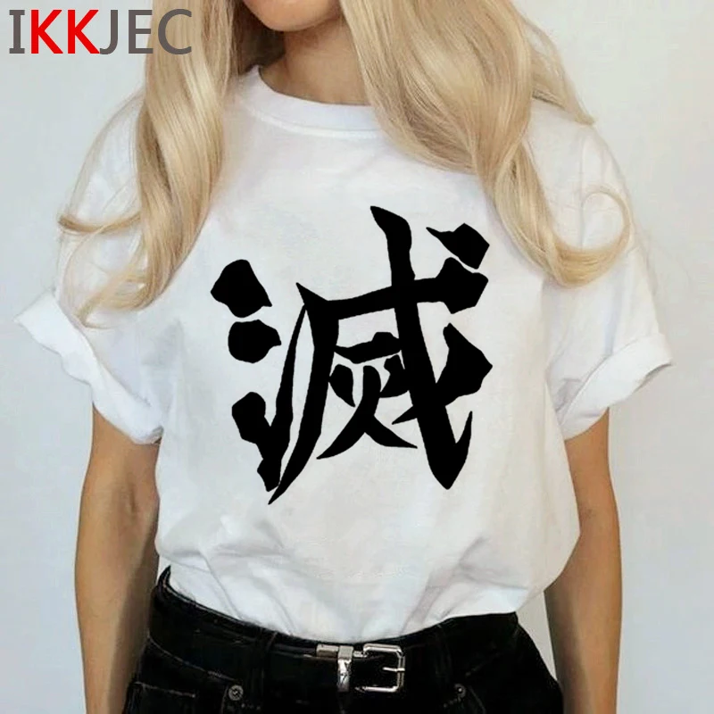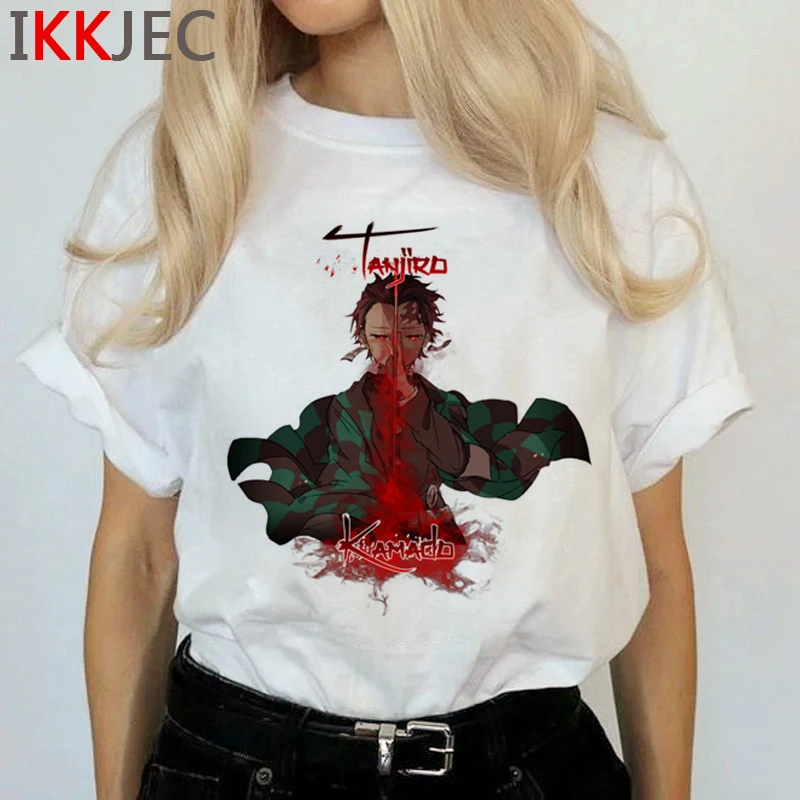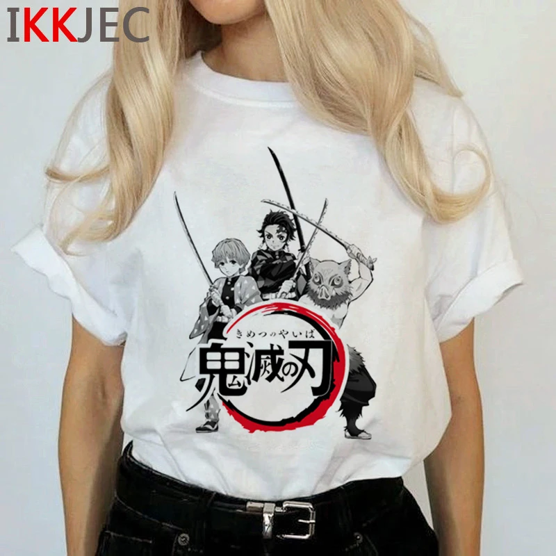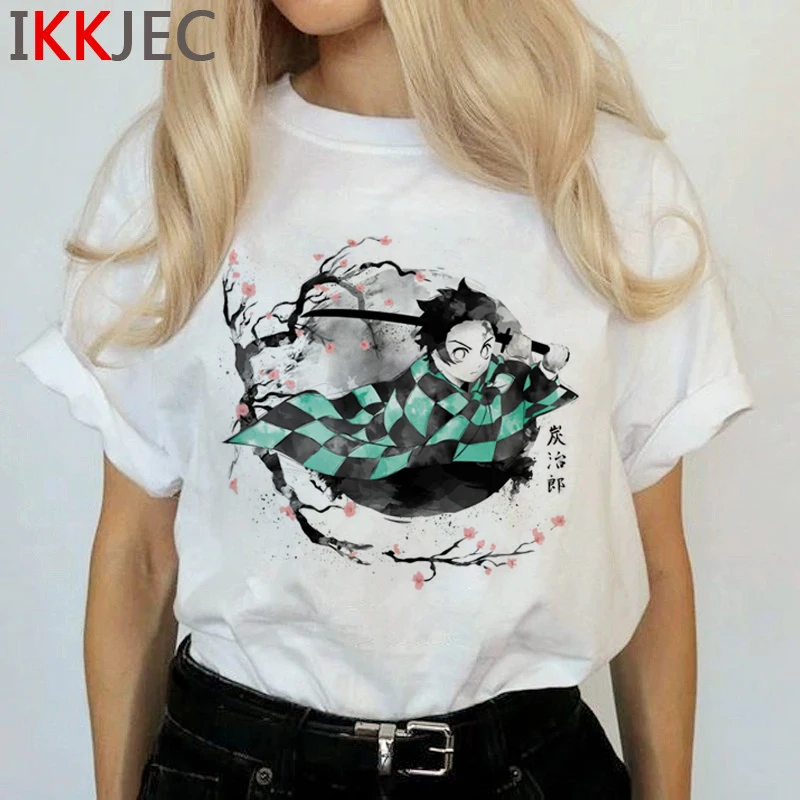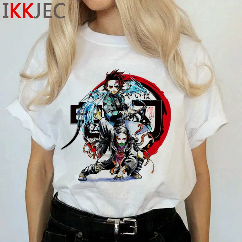 Футболка женская с изображением рассекающего демонов, аниме футболка в стиле Харадзюку, крутая с забавным мультяшным принтом в стиле 90-х, топ с графическим рисунком, Kimetsu No Yaiba Ullzang