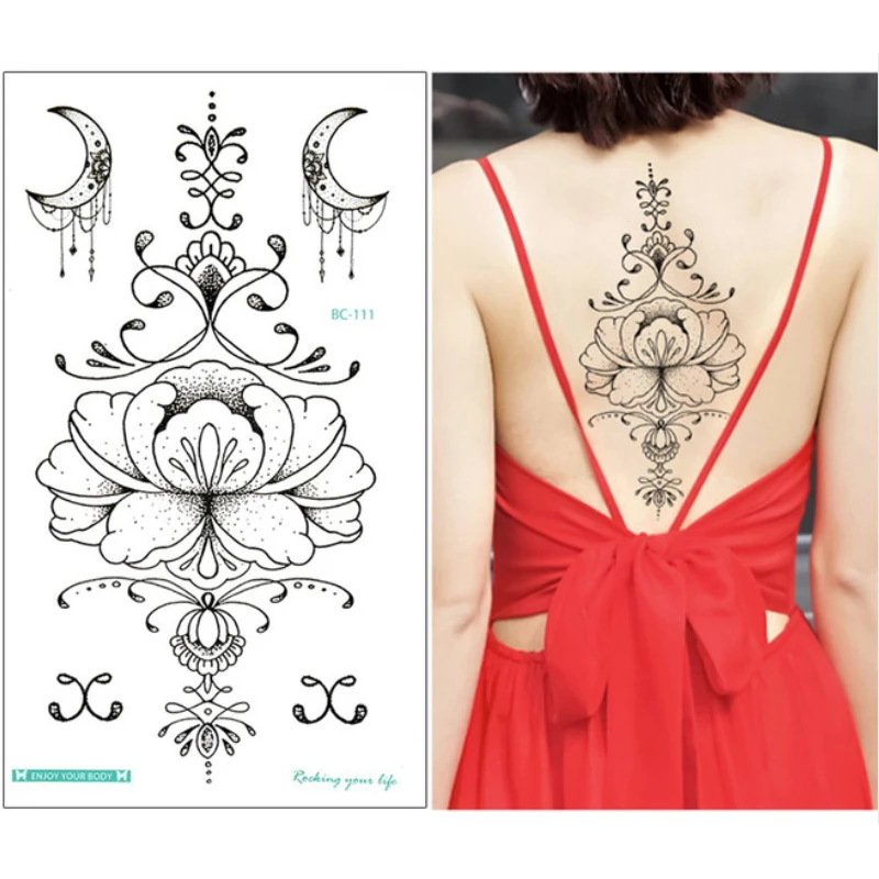 1 шт. Временные татуировки для боди-арта нижняя часть спины Фэнтези поддельные татуировки для женщин девушек взрослых племенные цветы водонепроницаемые наклейки