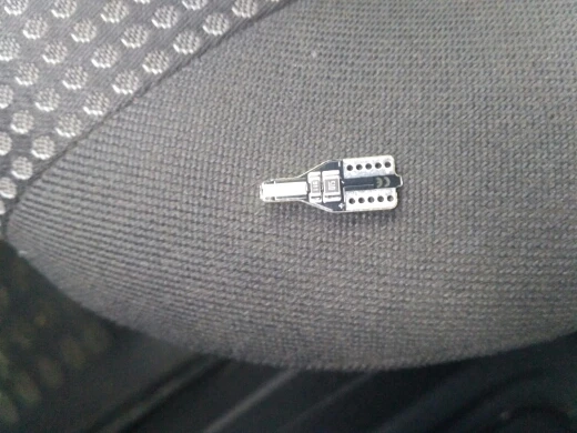 Работают в подсветке номерного знака, светят холодным белым. Но в потолочных светильниках в салоне отказались работать даже при смене полярности. При этом провода к плафона сильно нагревались. Видимо КЗ от этого светодиода, полагаю контактные дорожки очень близко и светодиод подкорачивает ....