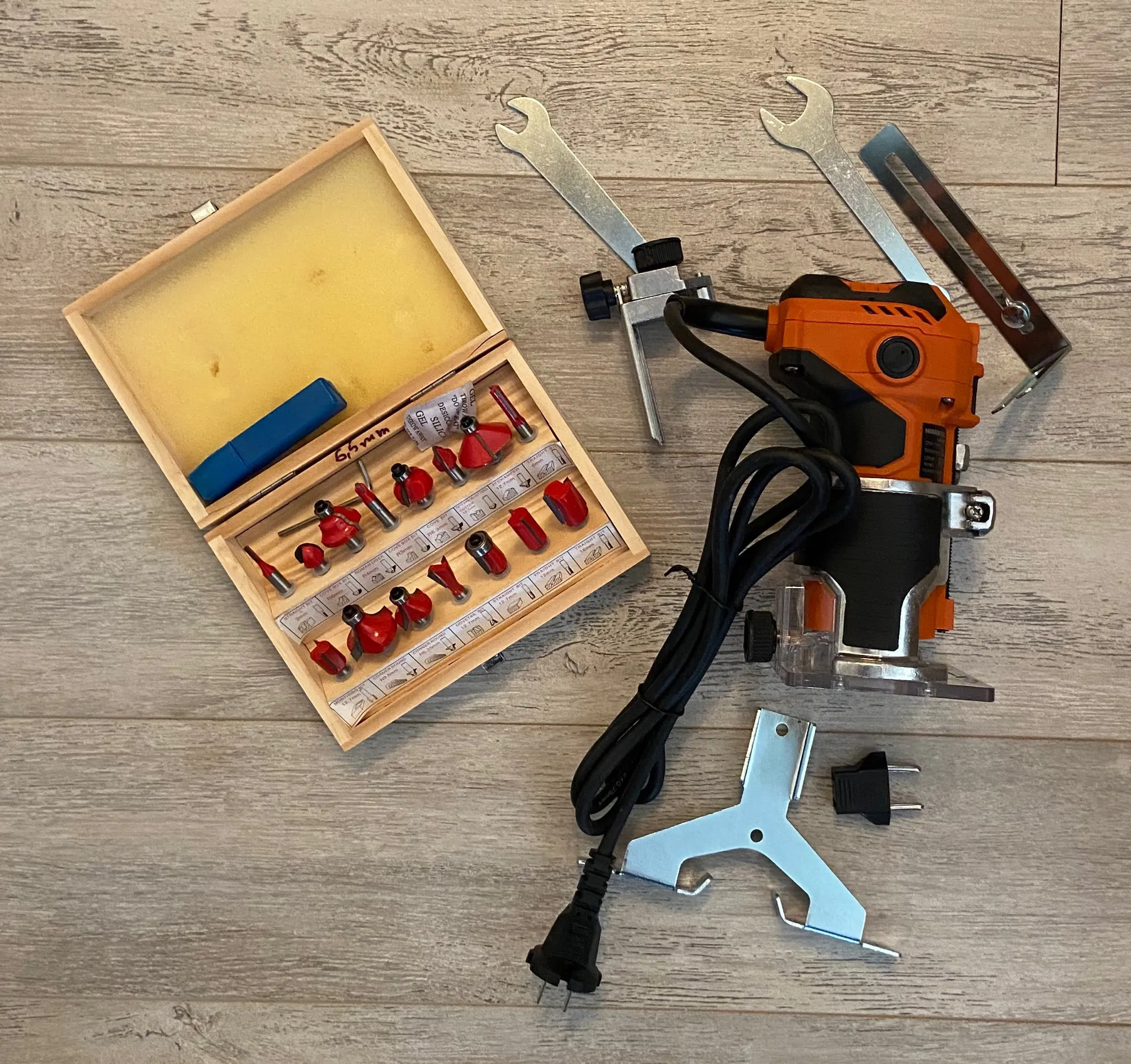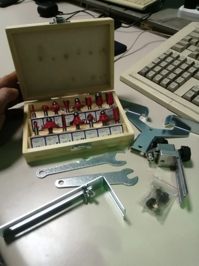 Доставка - 4 дня. Все на месте фрезер + набор фрез, качество на вид хорошее, В работе пока не пробовал.