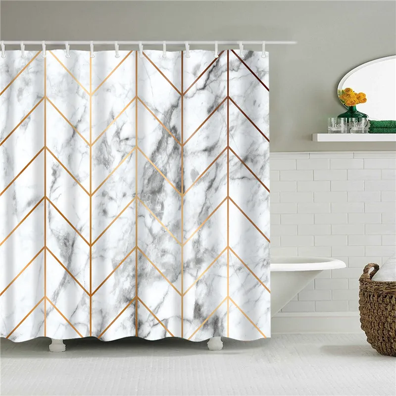Занавеска для душа с мраморным узором и геометрическим рисунком