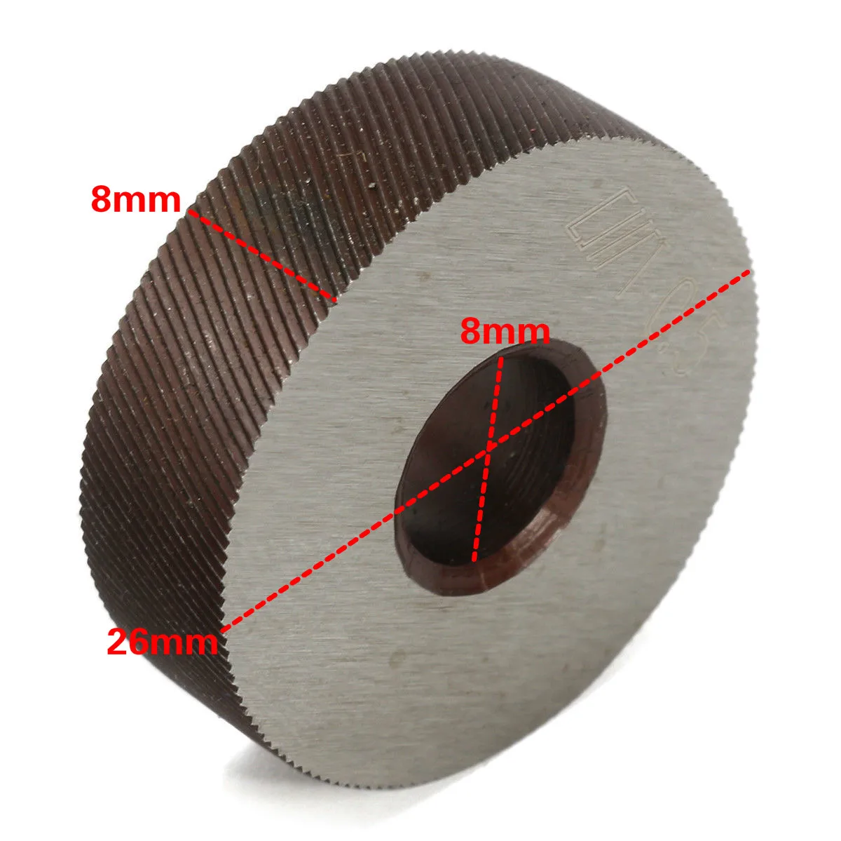 Материал: сталь Шаг накатки: 1,0 мм/0,04'' Размер колеса: 26x8 мм/1,02x0,31 ''(D x T) Колеса отверстия Диаметр: 8 мм/0,31''